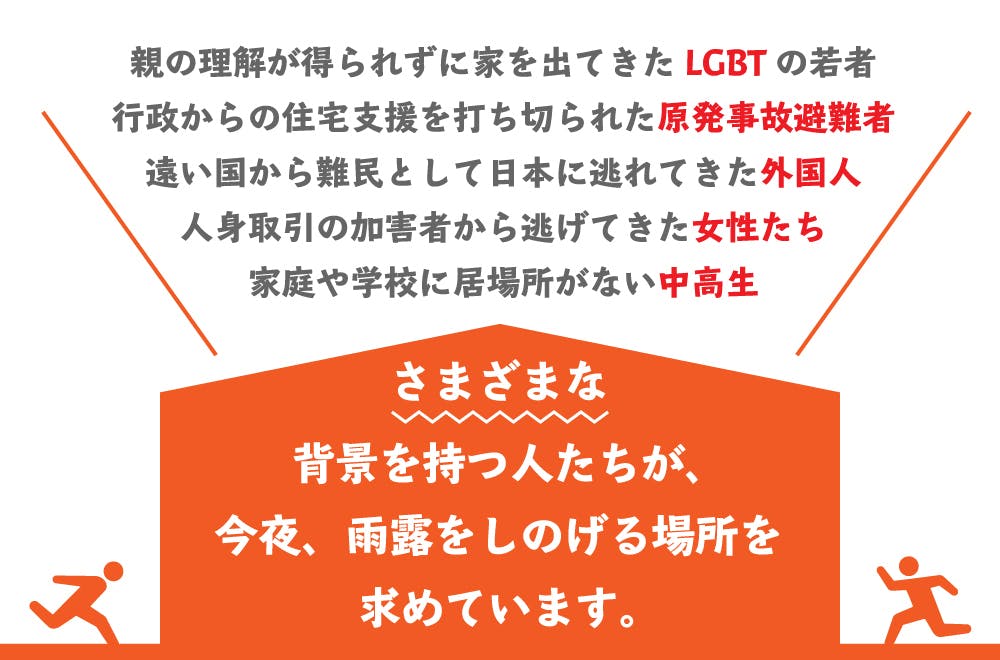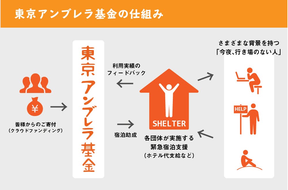東京には、行き場のない人を雨露から守る「傘」が充分にあるとは言えない状況なのです。