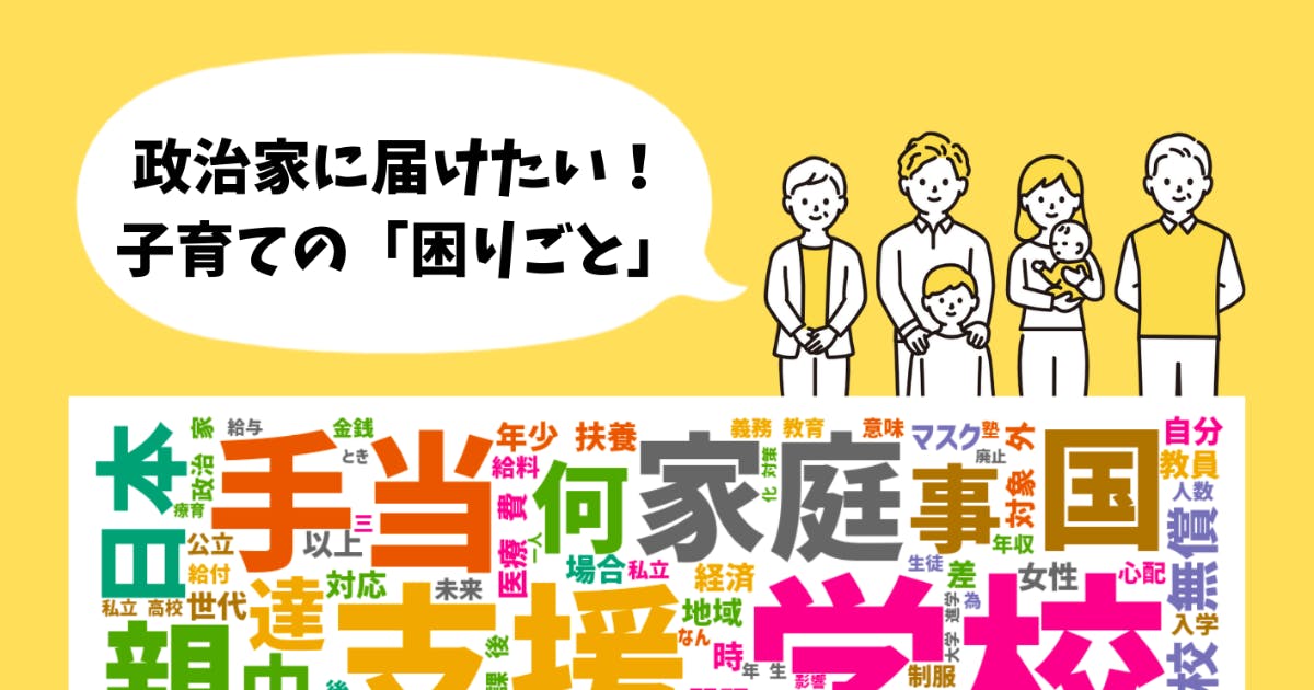 【締め切りまであと3日!】「政治家に届けたい!子育ての実情アンケート」回答お願いします!