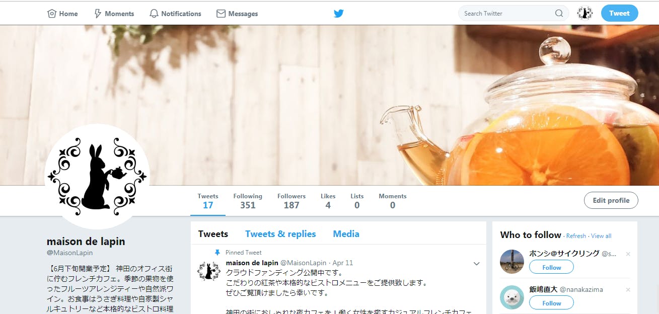 ※4/18 更新 Twitterアカウント作成しました! https://twitter.com/MaisonLapin