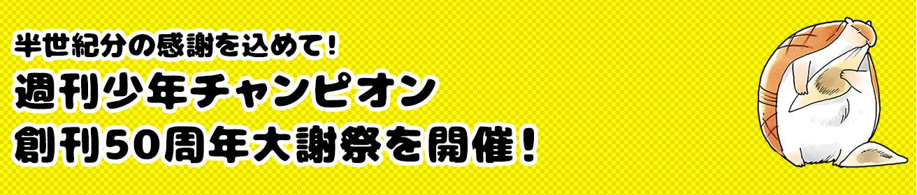 週刊少年チャンピオンは2019年7月に創刊50周年を迎えます!50年の感謝の気持ちを込めて、週刊少年チャンピオン 創刊50周年大感謝祭を開催!週刊少年チャンピオンの歴史を築いてきた先生たちが考えた企画や、ここでしか見られないすごい展示が盛りだくさん‼