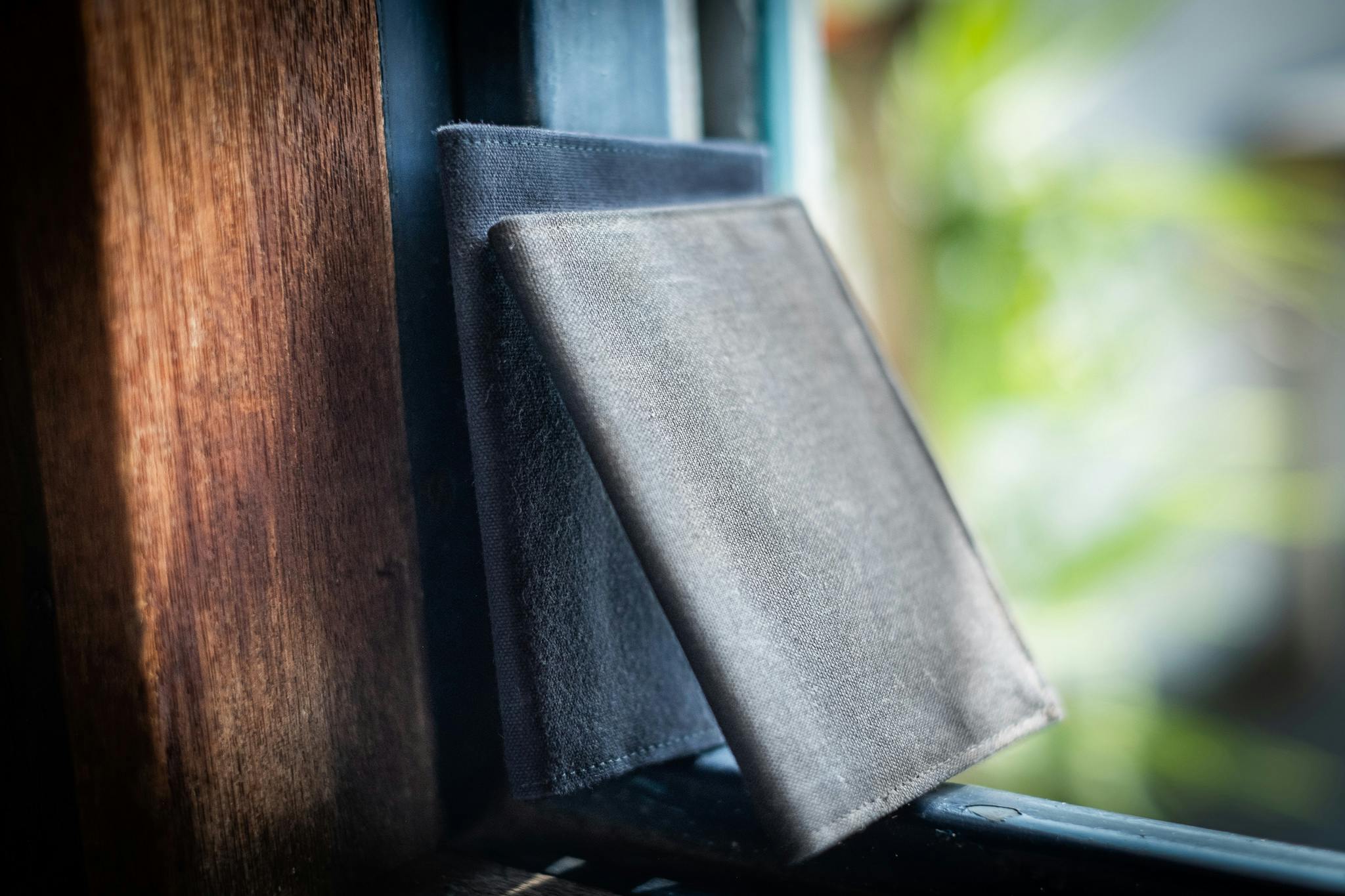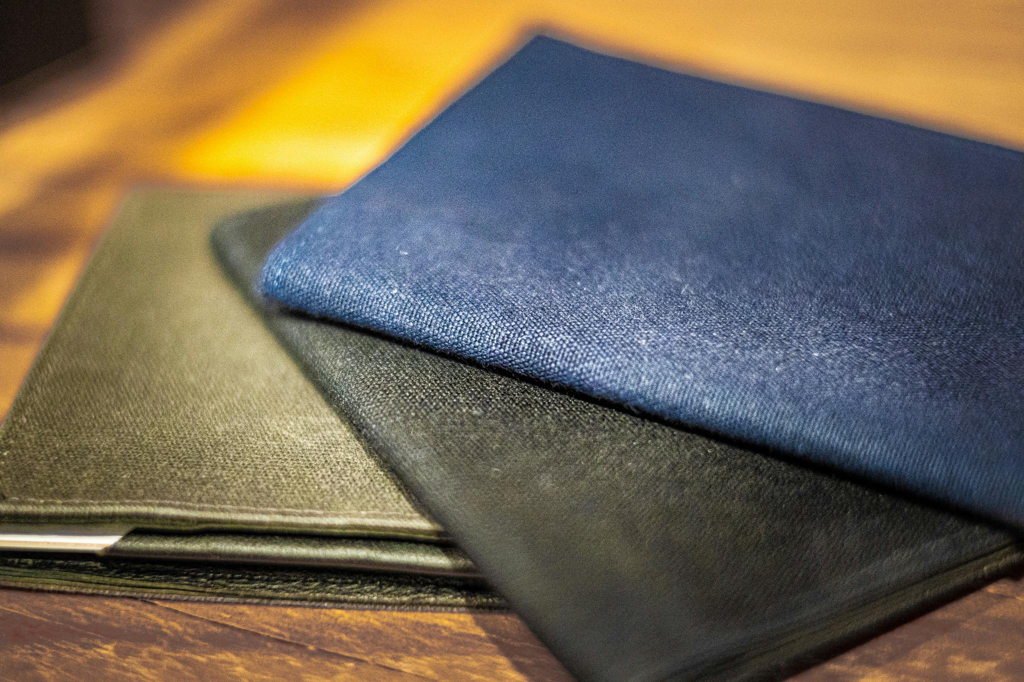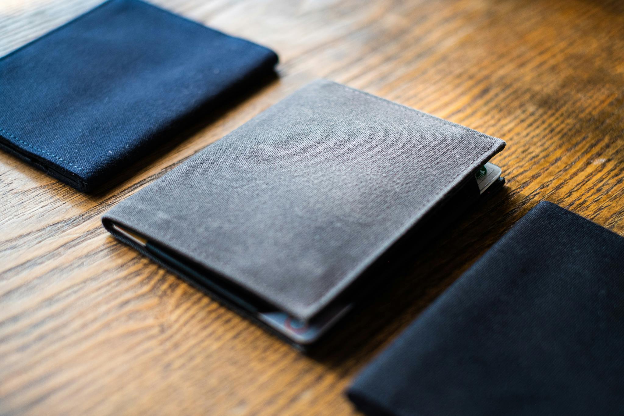 薄く設計されている「Tenuis3」の最大の懸念は耐久性でした。薄く作るためには、採用する素材も薄くする必要があり、耐久性が犠牲になりやすいのです。その6mmの薄さを可能にしてくれたのは、ゴートレザー(ヤギ革)と帆布(はんぷ)という財布としては珍しい素材。