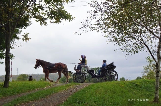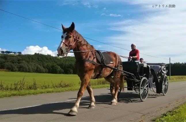 力持ちのブルトンの由美子なら人を乗せた大きい馬車も引っ張ることができます。