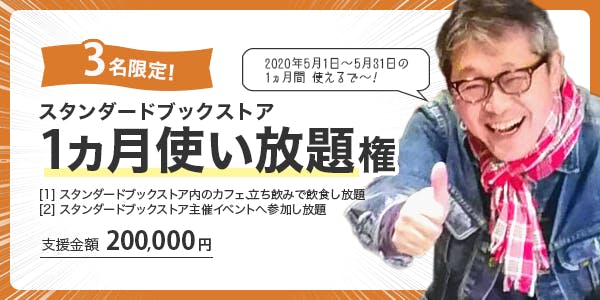 2020/02/19 14:17みなさんのご支援のお陰で、500万円の目標が12日間で達成することができました本当にありがとうございます達成記念として、リターン追加しますなんと、5月の1ヶ月飲食し放題権を限定3名で追加しますさらに開催されるイベントも参加し放題ぜひ、1ヶ月スタンダードブックストアに入り浸って下さい もっと見る