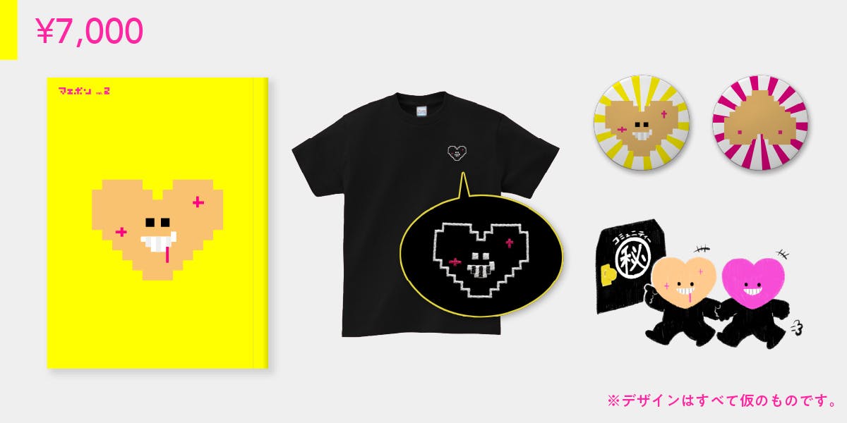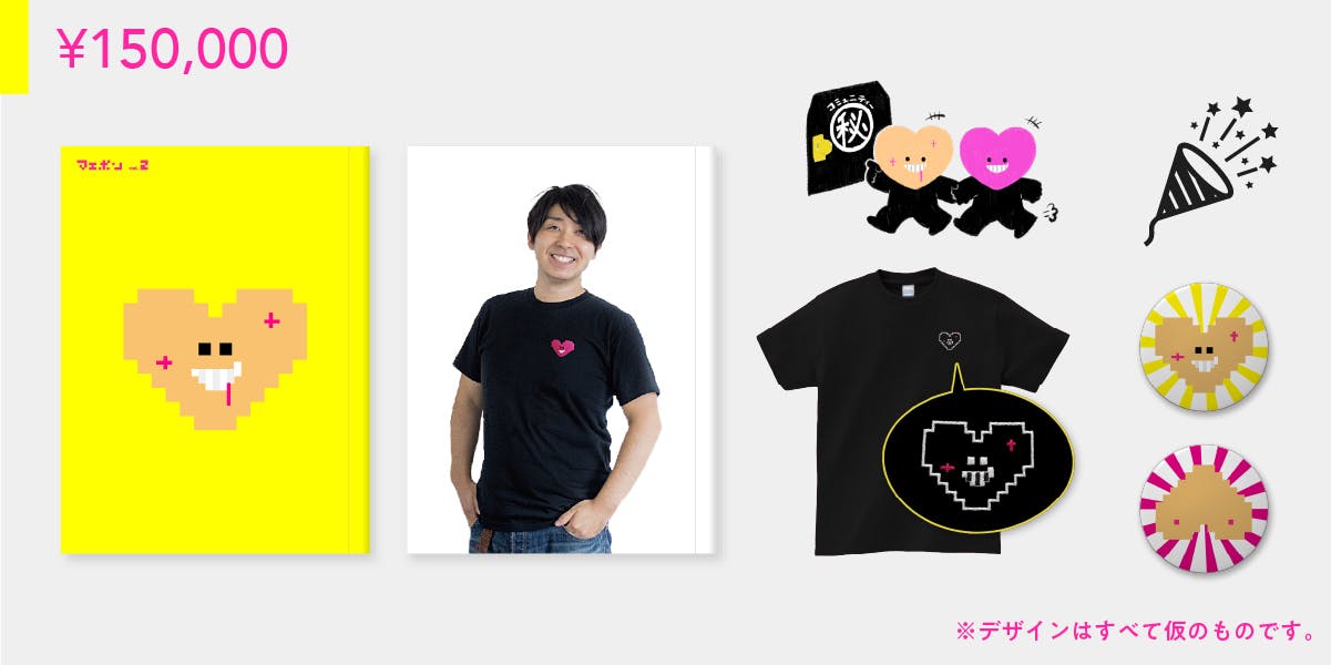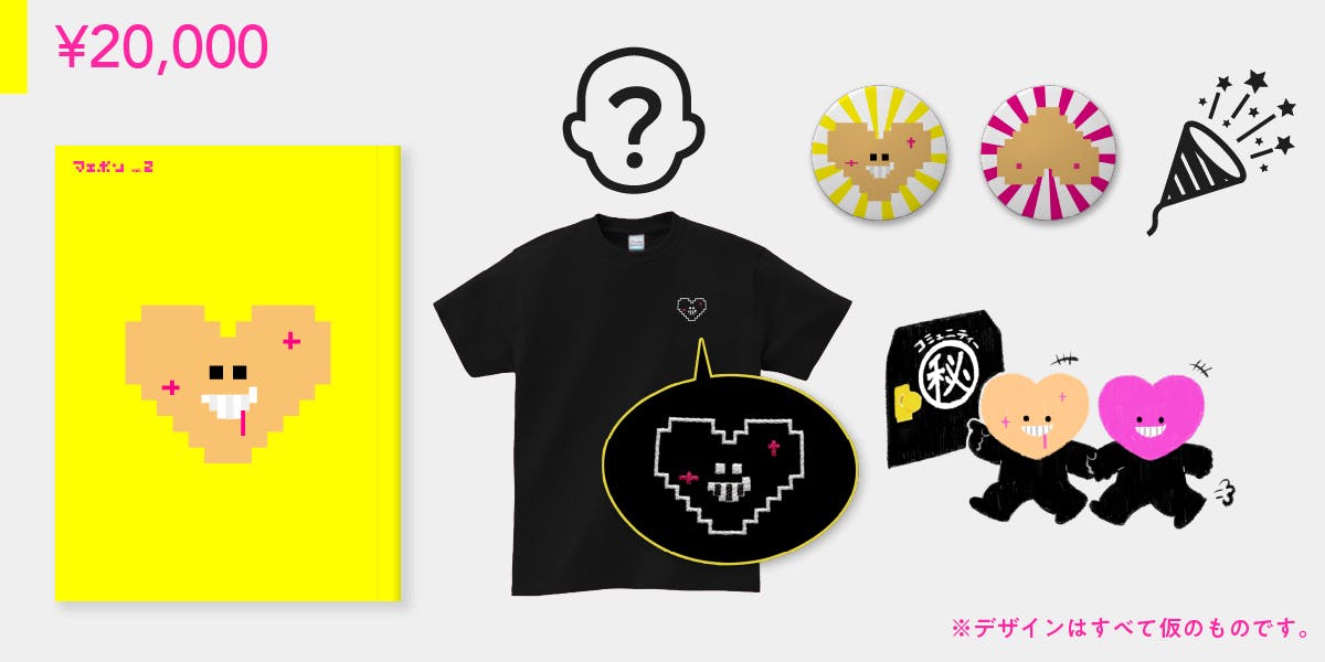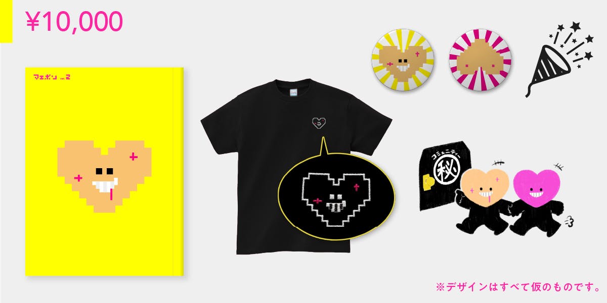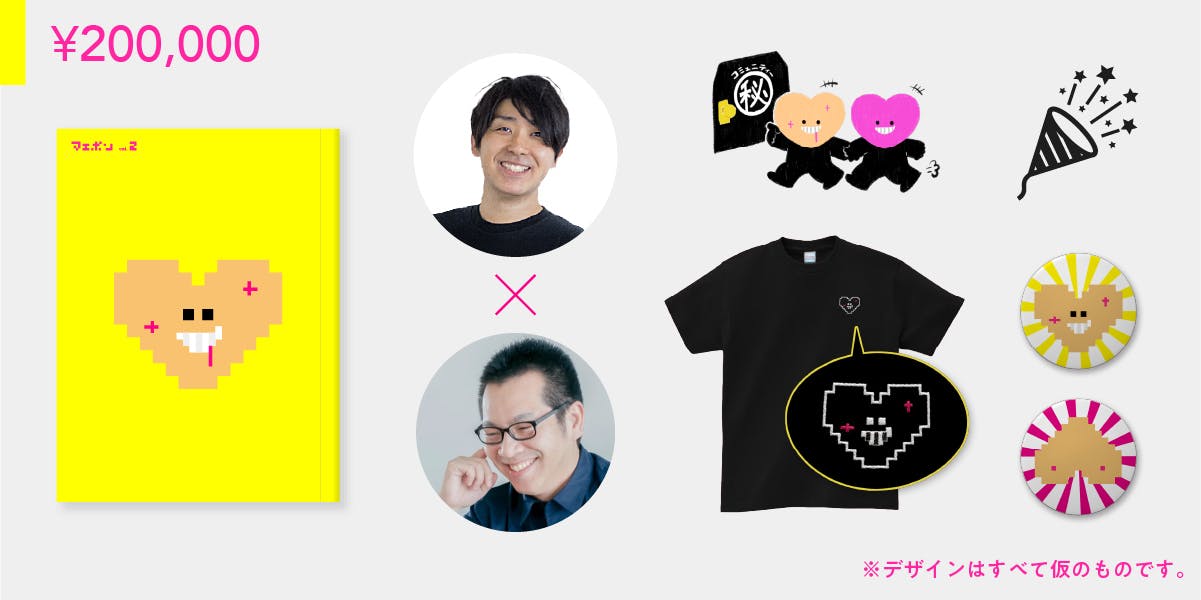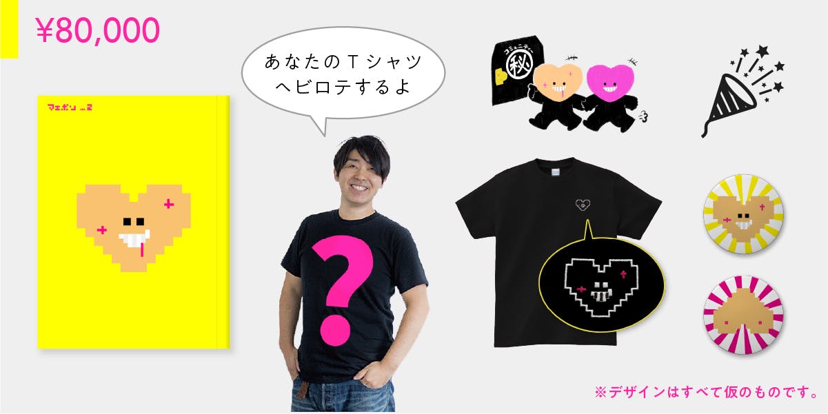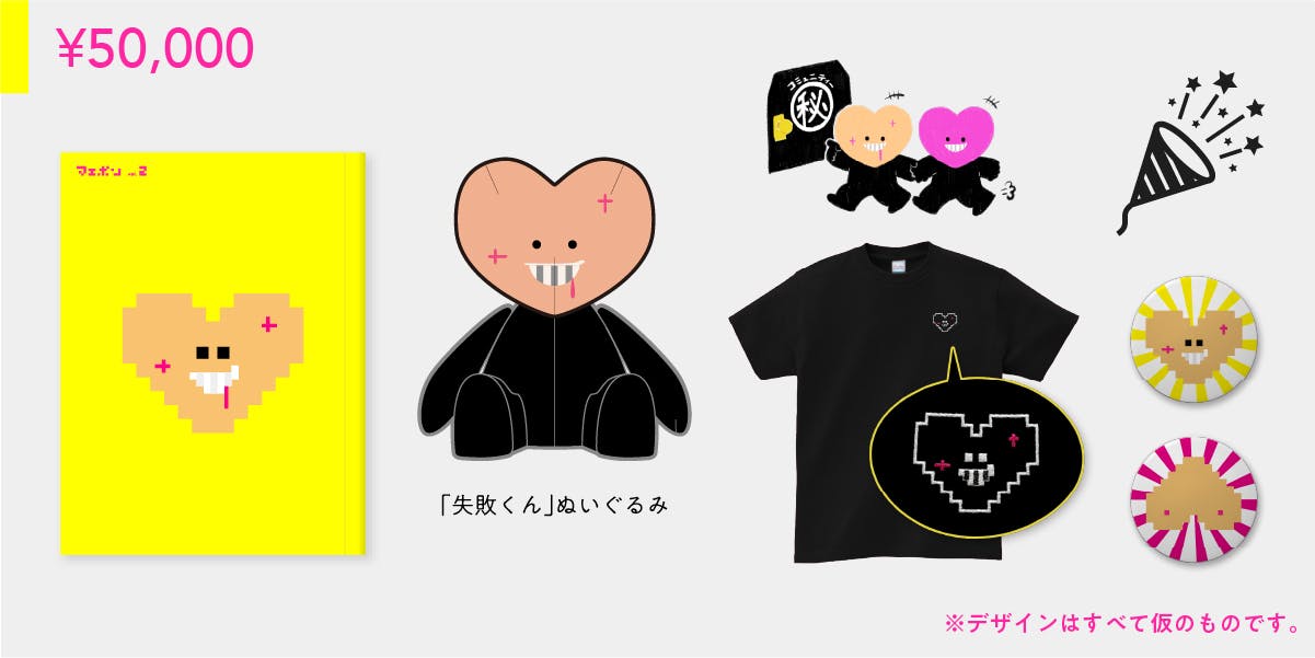 限定缶バッジ+Tシャツ+お披露目パーティー(定例会)参加券+「失敗くん」ぬいぐるみ 50,000円(税込、送料込み)