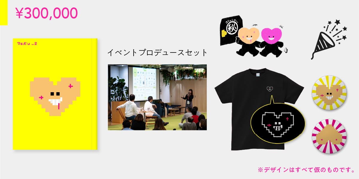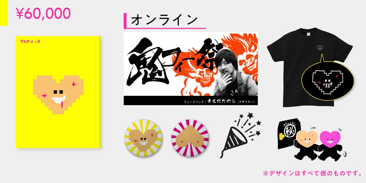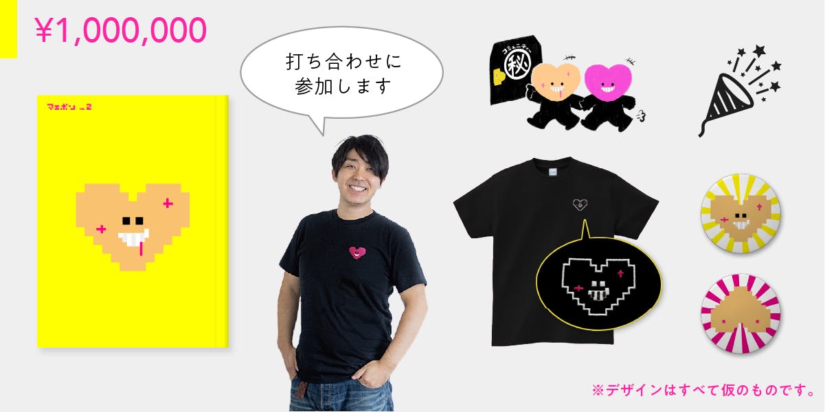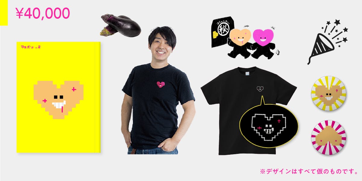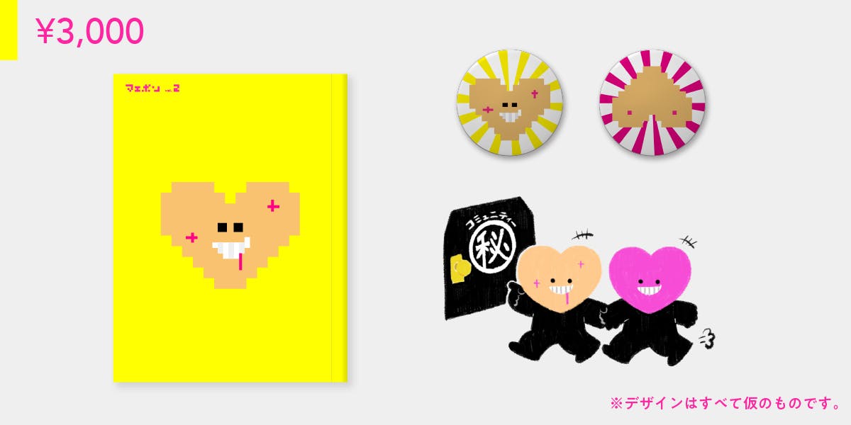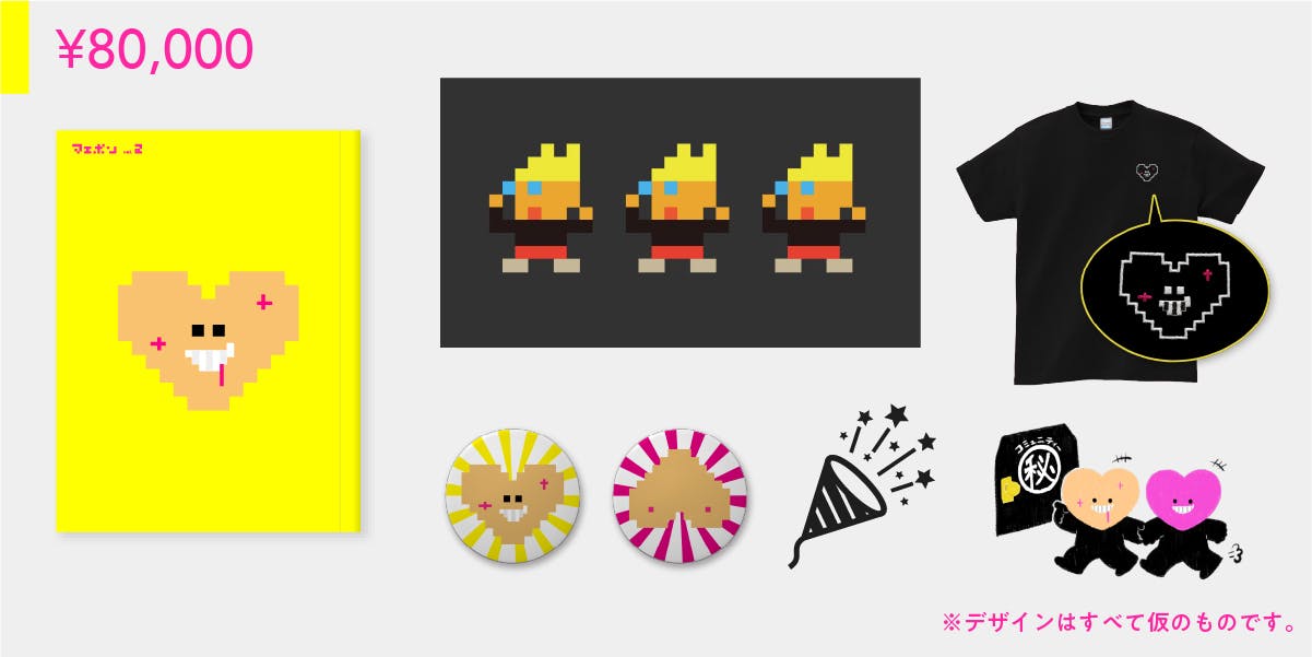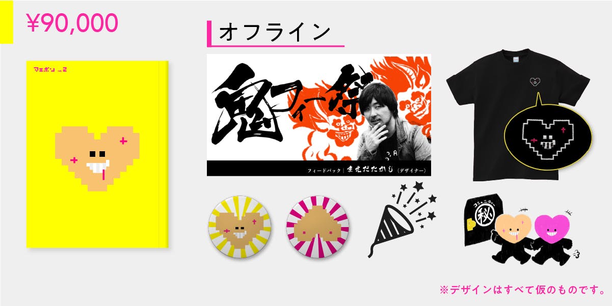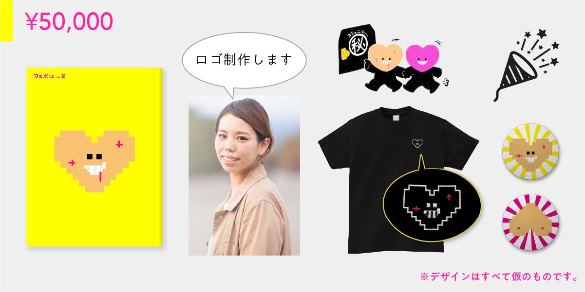 限定缶バッジ+Tシャツ+お披露目パーティー(定例会)参加券+「失敗くん」ぬいぐるみ 50,000円(税込、送料込み)