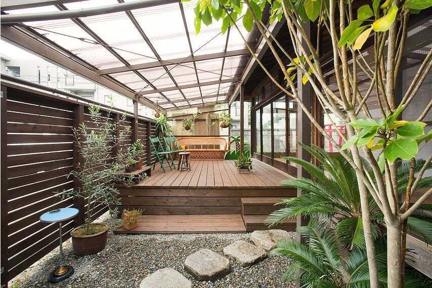 もともと何もなかった縁側は、庭師の友人と協力してウッドデッキを設置しました。