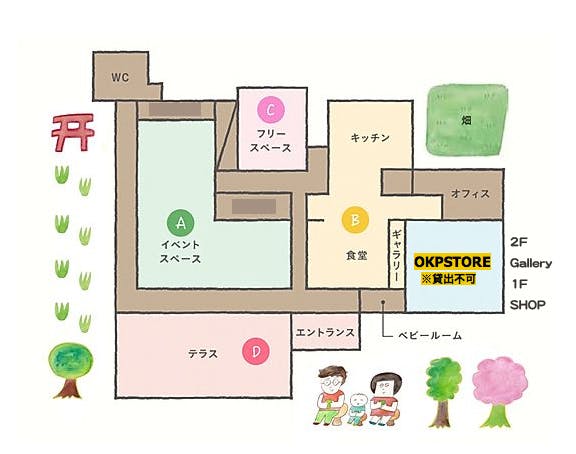 敷地100坪、建物は60坪程度あり、最大で100名もの人が収容できるスペースです。