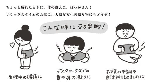 生理による腰痛、腹痛に。 デスクワークで凝り固まった肩、首に。