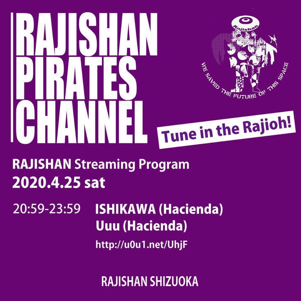 2020/04/23 19:39残り一週間となりましたが、みなさまから予想を上回るご支援いただき感謝の言葉もありません。本当にありがとうございます。さて先週に引き続き今週土曜の夜もラジシャンの配信プログラムを行います。今回はラジシャンのレギュラーパーティーHaciendaのDJ、ISHIKAWA&Uuuでお送りいたします。まだまだ試行錯誤しながらなので至らない点をあるかと思いますがお時間御座いましたらご覧いただければ幸いです。RAJISHAN PIRATES CHANNELStreaming Program2020.4.25 sat20:59-23:59ISHIKAWA (Hacienda) / Uuu (Hacienda)http://u0u1.net/UhjFRAJISHAN PIRATES CHANNELStreaming Program2020.4.25 sat20:59-23:59ISHIKAWA (Hacienda) / Uuu (Hacienda)https://www.twitch.tv/djkazuyoshi もっと見る