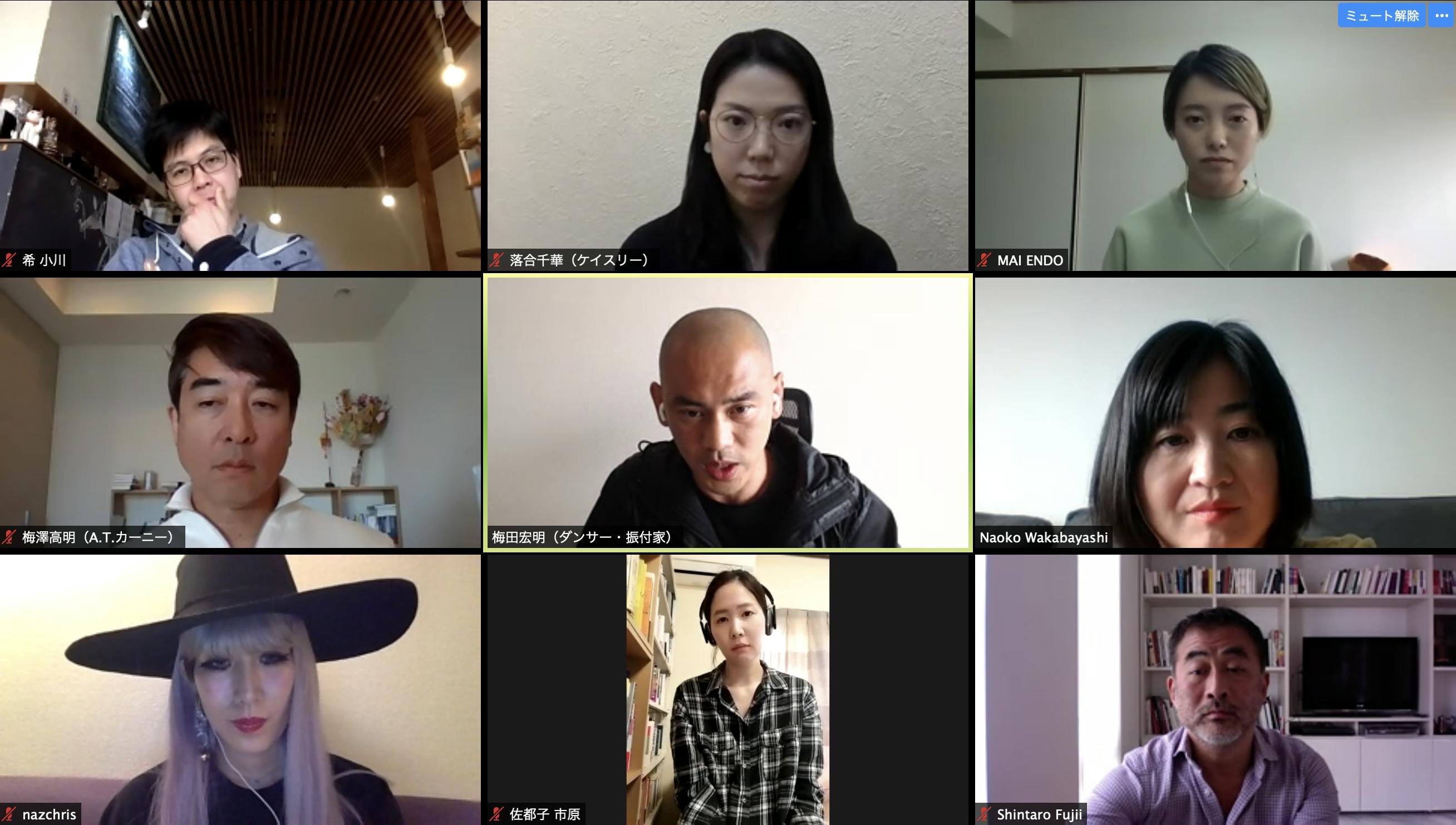 Naz Chris(DJ/プロデューサー/DIRTY30プロダクション代表取締役)、小川希(Art Center Ongoing代表)、西山葉子(舞台制作・フリーランス)、田頭真理子(写真家)、鯨エマ(役者(J-CLIP)/NPO法人シニア演劇ネットワーク理事長/海千山千代表)、上田秀一郎(太鼓奏者)、井内美香(音楽ライター、オペラ・キュレーター)、田中素子(合同会社TiSEg 代表/恵比寿ダルクローズ音楽教室「ジャックと音楽の木」主宰) 、小室敬幸(音楽ライター/ラジオDJ/大学教員) 、はせみきた(太鼓奏者)、八木光太郎(俳優)、中井美穂(フリーアナウンサー)、Tarinof dance company、遠藤麻衣(美術作家/俳優)