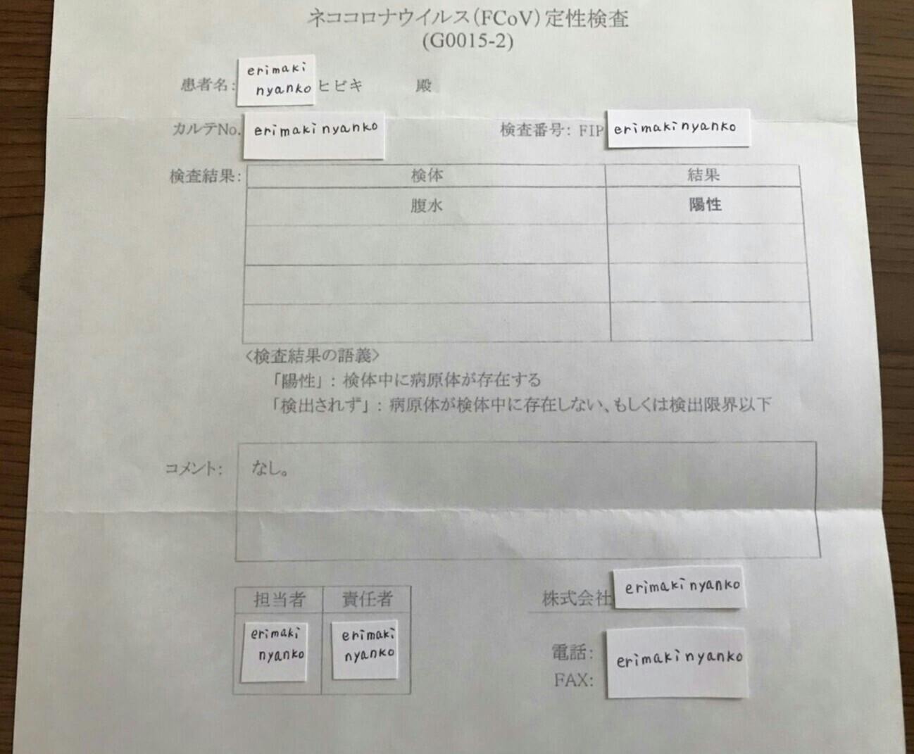 【猫伝染性腹膜炎(FIP)】陽性