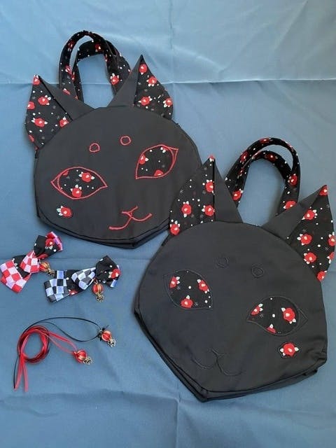 【黒猫トートSet/刺繍カラー赤】