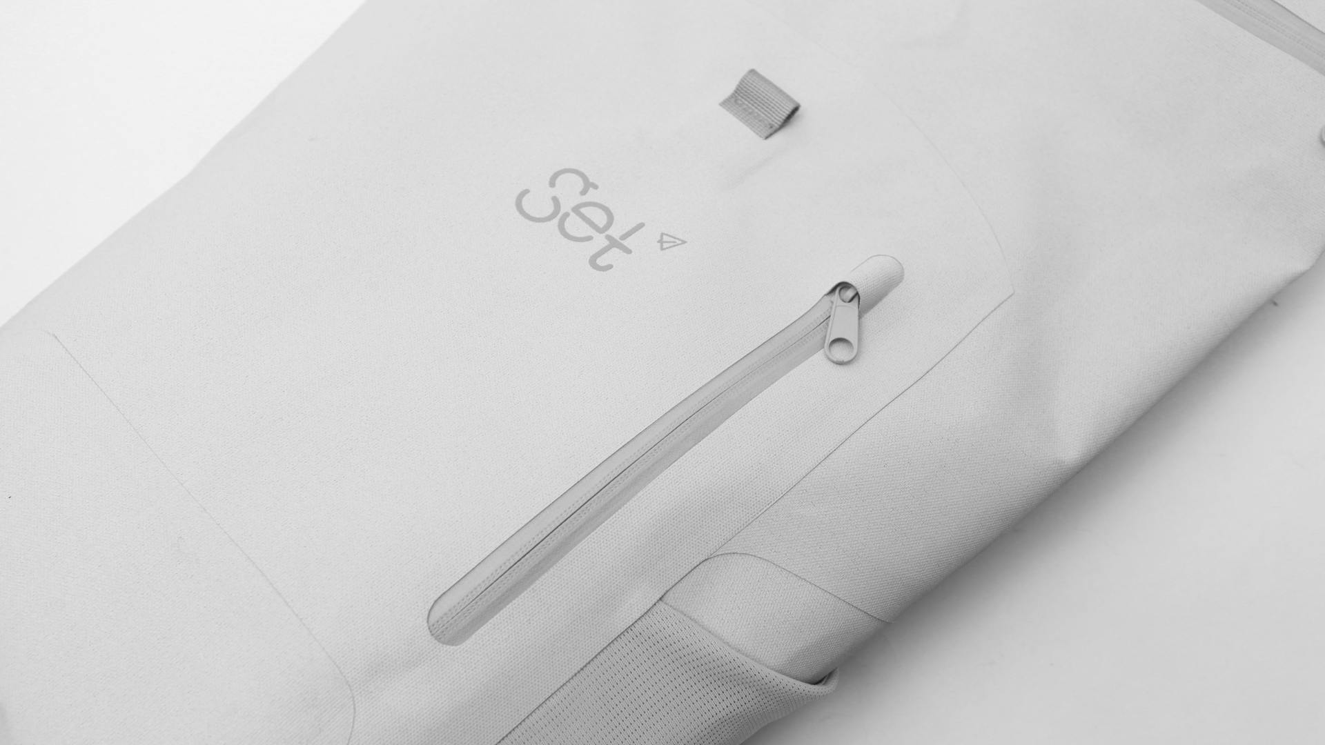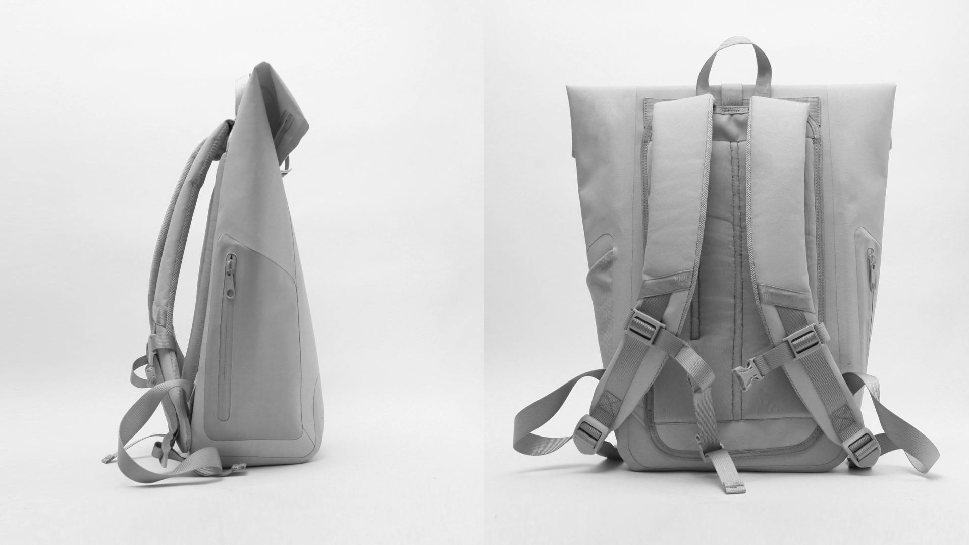 Waterproof bag "Get Set" は、余計な装飾をなくしたすっきりとしたデザインが特徴です。どんな色にでも合うグレーとブラックの2カラーで、お持ちの服装やアイテムにもしっかり馴染みます。