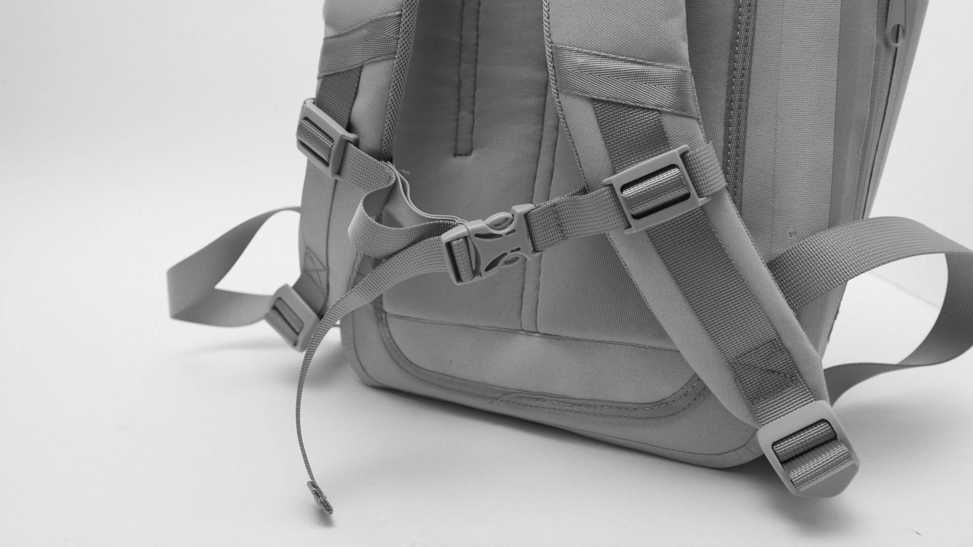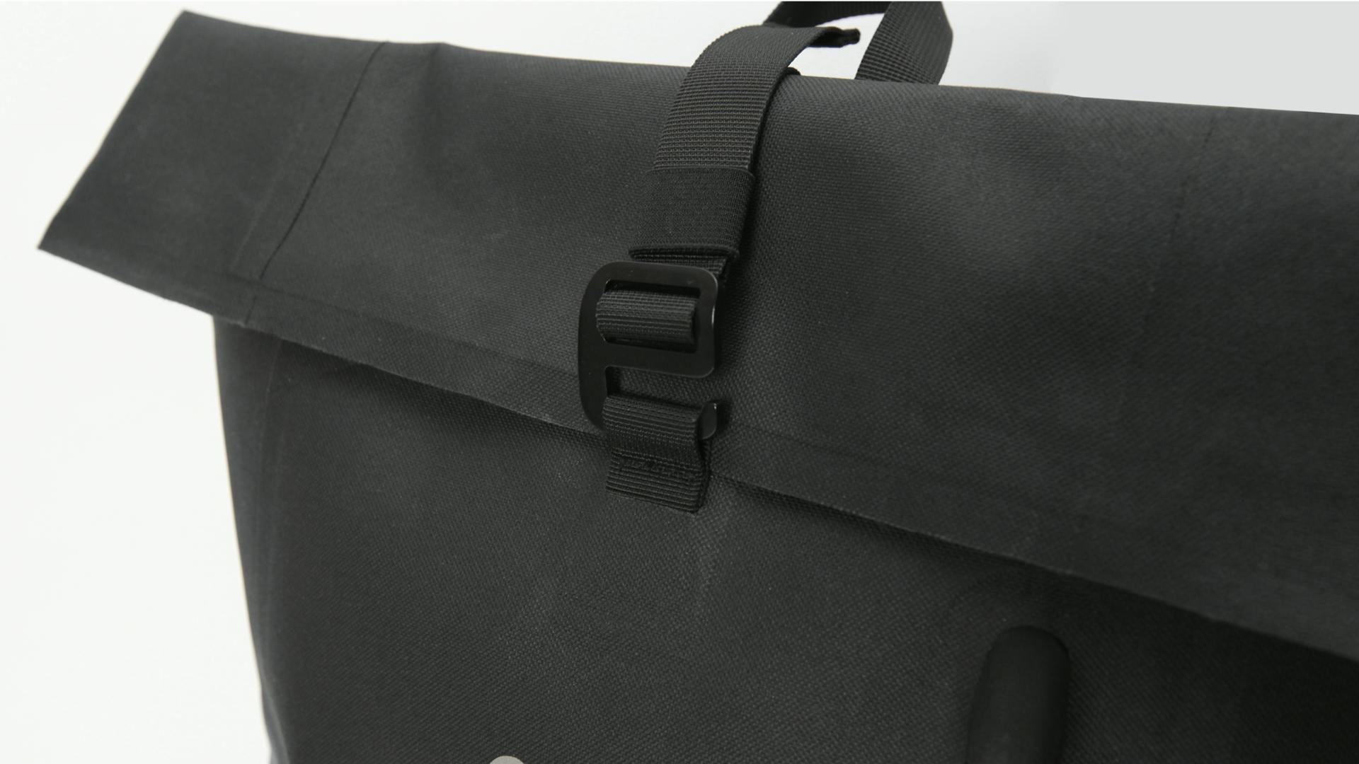 シャープさのあるフォルムでアクティブな印象。筒状の袋のような形状で、どんなものでもざっくり詰め込めます。嵩張る荷物もロール部分を伸ばせばしっかり収納。16インチPCもジャストで収納できます。