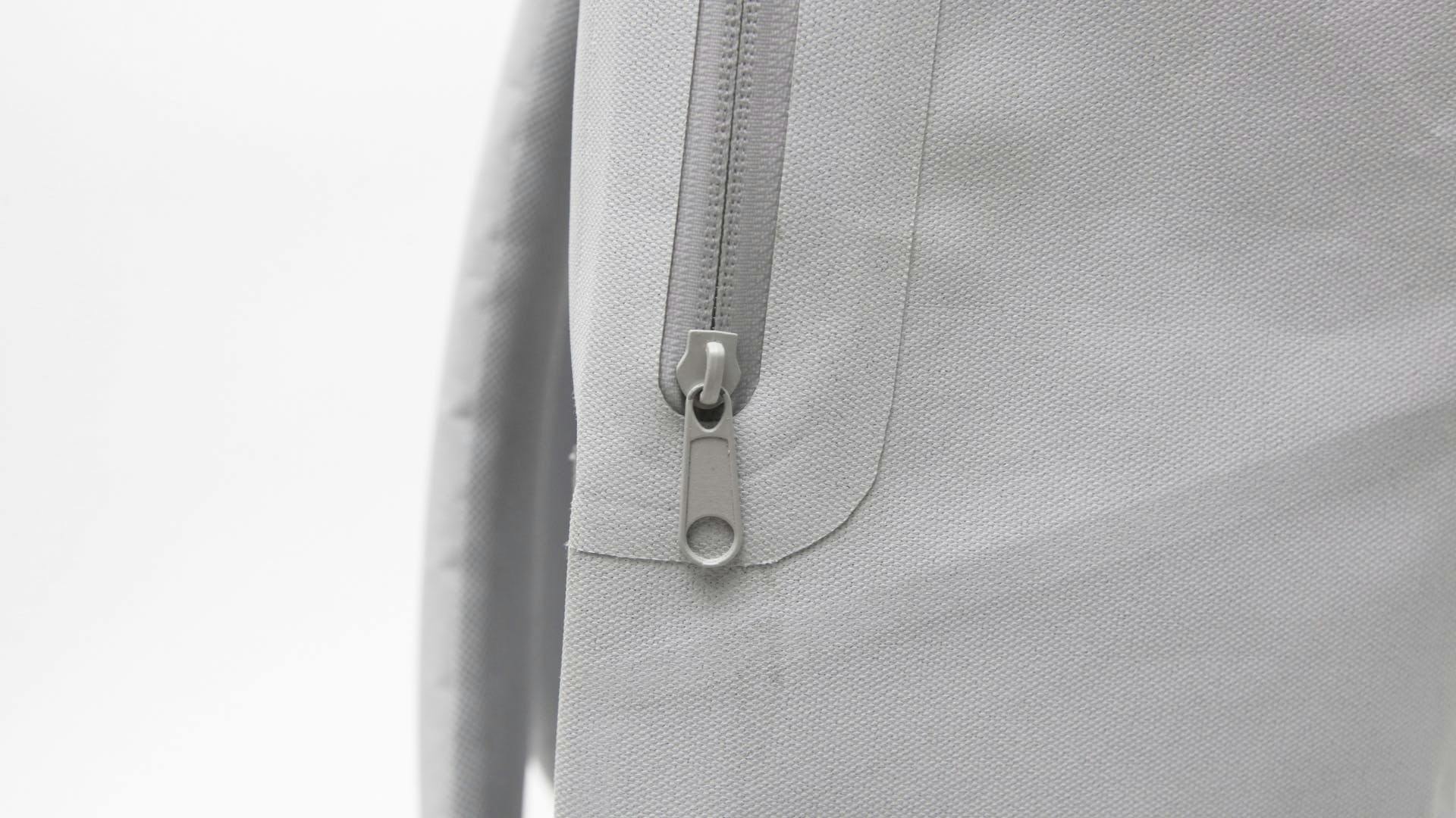 さらに、テープ部分に特殊なフィルムをラミネートした止水ファスナーを使用。スライダーの開閉と連動してテープが密着することで、防水性をさらに高めています。