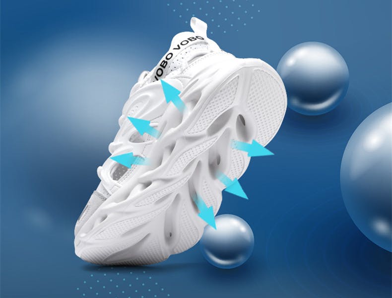 アッパー部分に通気性優れたメッシュ素材を採用して、靴内の足ムレを軽減し快適。360°循環通気、足が爽やかな履き心地が続ける!嫌な臭いを防ぎ、足空間を清潔に保ちます。