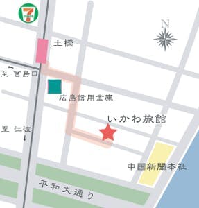 横川駅より: 広電電車 8番(江波行き) に乗り、土橋で下車、徒歩5分。