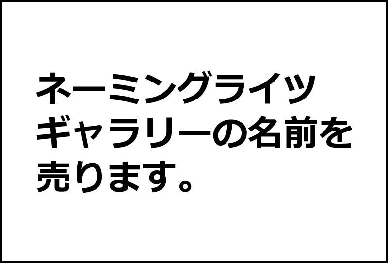 ギャラリーの看板、HP、全ての印刷物の名称が契約日から「半年間」ご指定の名称へ変更されます。ネーミングライツが決まった際は個展や企画展の売り上げにおける販売手数料の引き下げを実施しご利用いただく作家さんに還元していきます。