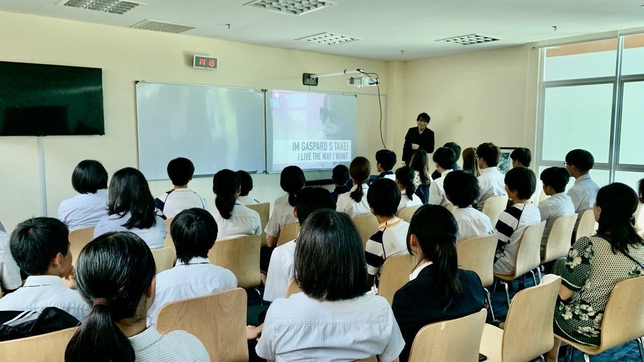 学校も、グローバルに活躍する日本人起業家を大歓迎で迎えてくれました。そして、およそ30名の日本人生徒を対象に、1時間の講演時間を設けてくれたのです。
