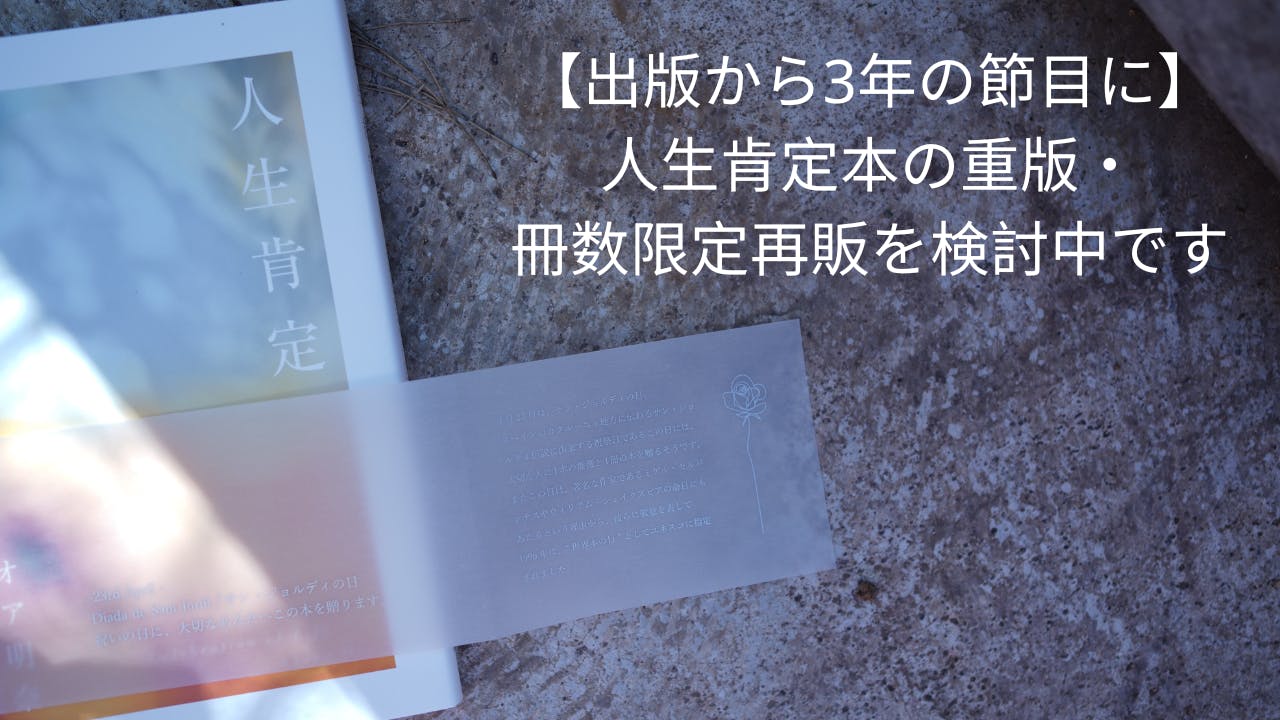 【出版から3年の節目に】人生肯定本の重版・冊数限定再販を検討中です!