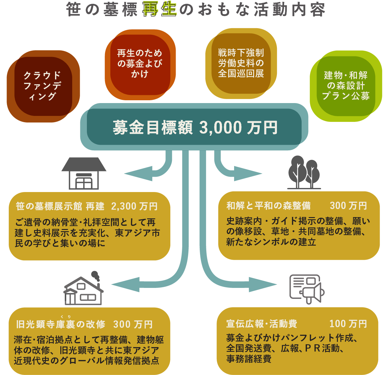だからこそ私たちは、東アジアの和解と平和の取組みが維持・継続されるよう、「旧光顕寺・笹の墓標展示館」 を再生し、市民たちによる交流を途切れることなく続けていきたいと思っています。