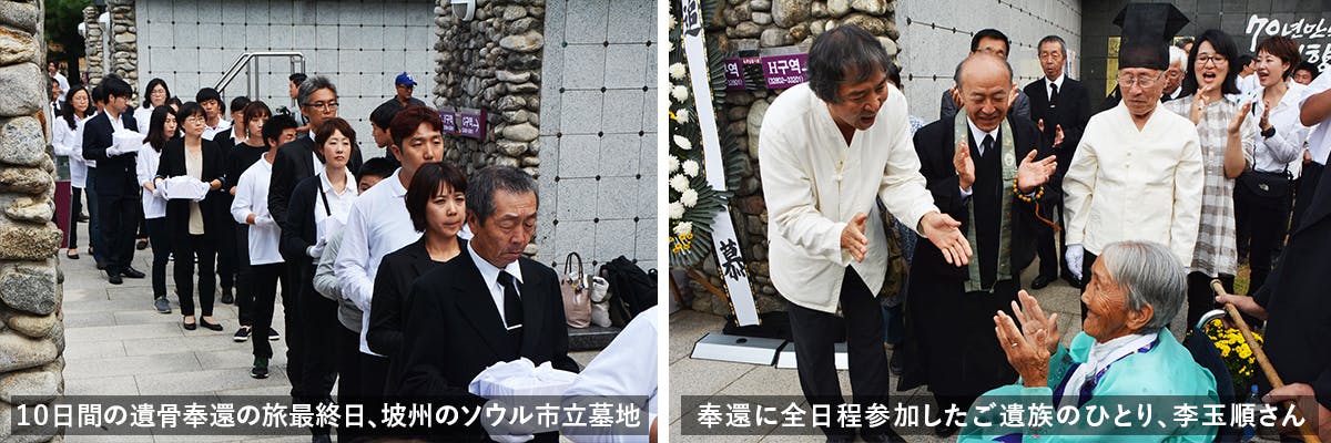 奉還団は釜山やソウルで追悼式・葬儀などを行なったあと、ソウル市が提供した納骨堂に遺骨を安置し、ついに「70年ぶりの里帰り」を果たすことになりました。