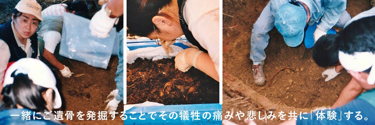 そんな中、若者たちは戦後半世紀以上、土の中に忘れさられていた遺骨を発掘し、その犠牲の痛みや悲しみを共に「体験」することで、歴史の真実を学びました。