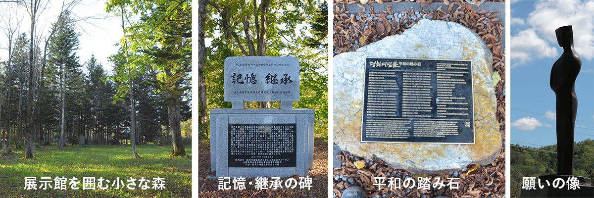 展示館の周辺には「記憶・継承の碑」、「平和の踏み石」、「願いの像」などの追悼碑が立ち並んでいます。