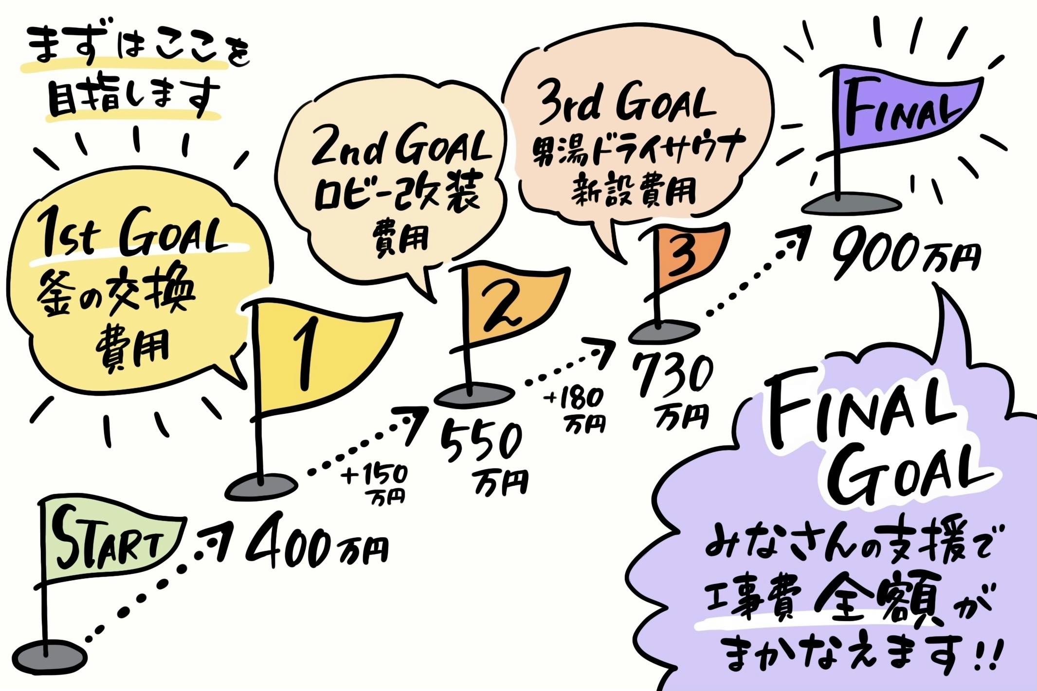 2021/05/30 20:21本日もご支援・ご協力ありがとうございます!クラウドファンディングは今夜23:59までで、今時点で457万円!ネクストゴール550万円まであと100万円を切りました。最終日ですので、今後に繋がる話題をいくつかお知らせします。◆目指せ!電気工事士本日5月30日、第2種電気工事士試験が実施されました。ゆとなみ社からも数名が受験しています。これまで配管などの工事は自分たちで手掛けてきましたが、今後は電気工事もできるだけ自社施工を目指しています。銭湯が減るとともに、関連業者さんも減っているので、銭湯を残していくためには自社でできることを増やしていくのも大事なことなのです。◆お楽しみ企画いろいろ日によって、様々なお楽しみを用意しています。気になる日を狙ってぜひお越しください!◎雨の日の『あひる風呂』 ※女湯のみ雨でどんよりした日に、ちょっとでも笑顔になってもらえたら…と思い、6月から始めてみます。実施予定は、当日各種SNSにて告知します。◎金曜日のDJナイト♪ 毎週金曜日18〜24時豊川のLiE RECORDSさんをスタッフにお迎えし、番台兼DJをしていただきます!脱衣所の高い天井に響く、幅広い音楽の世界をお楽しみください。◎火曜日の『本当の人蔘湯』薬湯に、人参入り漢方入浴剤を使用します。これぞまさに『人蔘湯』。人蔘湯の屋号の由来も、かつて高麗人蔘の入浴剤を使っていたからだそうです。人蔘湯の歴史を感じながらどうぞ〜※これまで毎日漢方入浴剤を使用していましたが、今後は曜日限定となります。他にも、豊橋市役所さんと一緒に考えている企画や、ご近所の水上ビルで活動する人たちとの企画など計画中です。豊橋というまちに根ざしたお楽しみをお届けできると思います。SNSでのお知らせをお待ちください!◆『本気の防災訓練!!』(実施日未定)本気でやります!できたら来月には…!というのも、銭湯で地震や火災が起きたら、実は危険がたくさんあります。裸ですぐに逃げられない、足腰の弱い高齢者が何人もいる、タイルなどが落ちて怪我をする、など…少ないスタッフで全てのお客さまを助けるには限度があり、お客さまご自身やお客さま同士で、判断・行動してもらうことが必要となります。そうした状況をなるべくリアルに想像して、何が必要なのか考える機会として、“本気の” 防災訓練をやりたいです。豊橋の中消防署にも相談して企画を練っています。またご案内します。また、災害対策として、燃料の重油を燃やすバーナーに、揺れたら自動で火を止める装置を追加しました。これで地震時の火災リスクがかなり減りました。◆これからは『続けること』を大事に4月にオープンするまでは、とにかくオープンすることを目指して必死でした。オープンしてからは、続けること。終わりのない長い長い時間の始まりです。オープンを待ち望んでくれていた方や、「また来るね」など声をかけてくれる方が本当に沢山で、この人たちのために、続けなければと身が引き締まります。どうか末永くお付き合いいただけましたら幸いです。クラファン終了まであと少し、よろしくお願いいたします! もっと見る