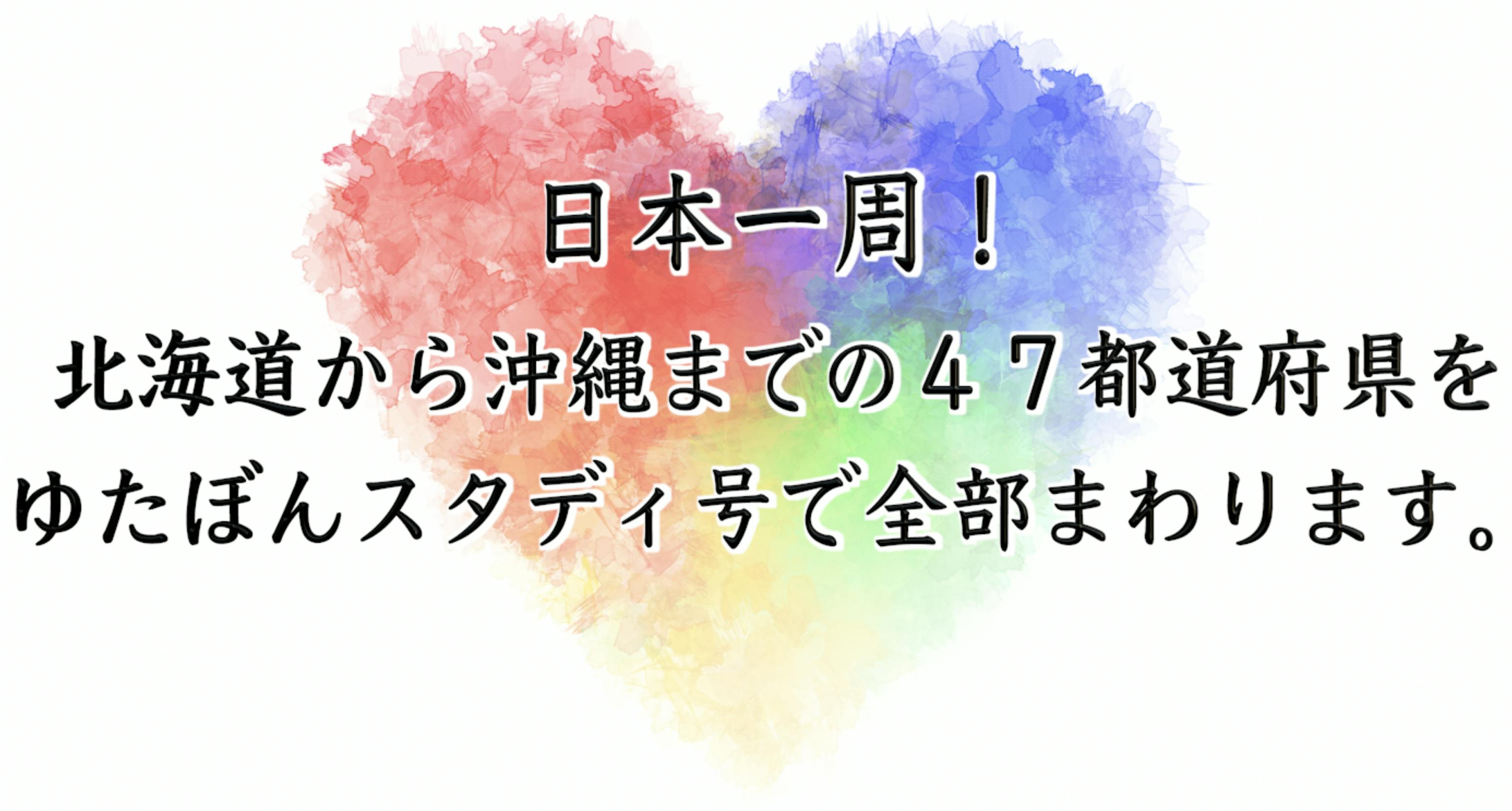 世界中をまわって友だちを作ろうと思っているのですが、その前にゆたぼんスタディ号で日本一周して日本中に友だちを作ります。