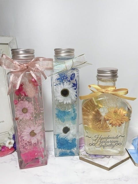 ◼️涼し気な海をイメージしたハーバリウムと夏の温かさをイメージしたハーバリウム!