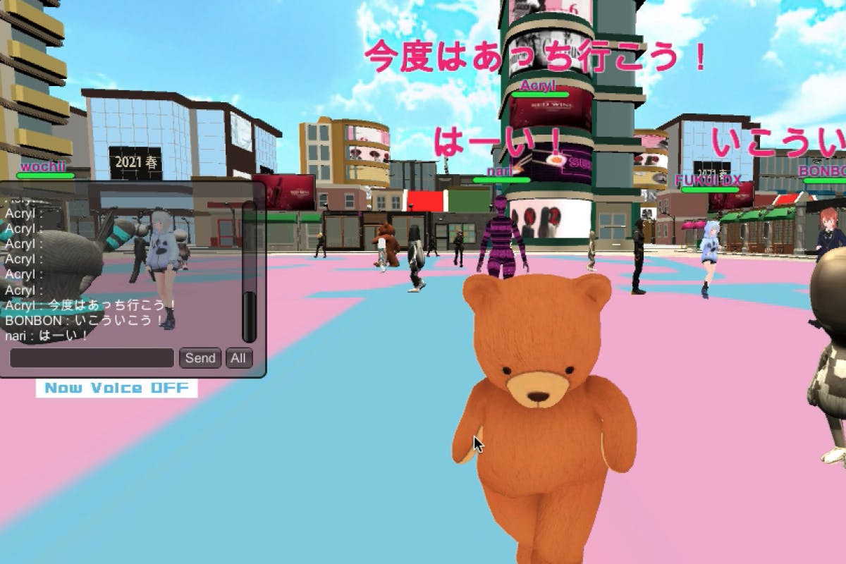 またバーチャル空間ではショッピングのみならず、お友達と待ち合わせてちょっとおしゃべりするだけ、といった使い方もできます。友達と趣味のものを交換する場として使っても良いし、ちょっとした集会をひらく場として使うことも可能。