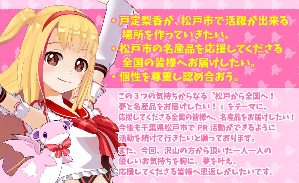 更に松戸駅にポスター掲示、戸定梨香オリジナル楽曲制作などに使用させていただきます。