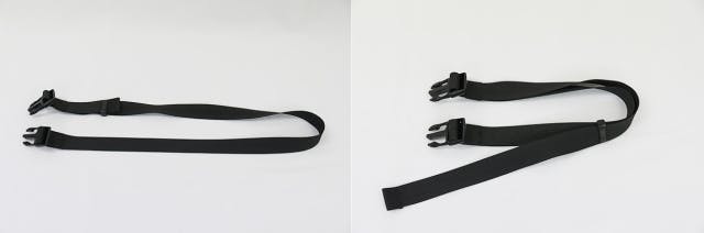 ショルダーベルトの形状を工夫し、最短↔最長の調整幅を自社他商品のショルダーベルトより大きくしナナメ掛け、肩掛けに対応出来る仕様にしました。