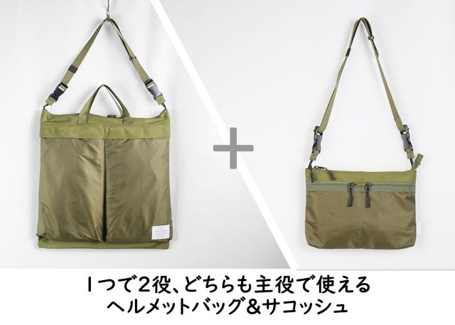 他のトランスフォームバッグには無い、機能性とデザインを両立した本格的なヘルメットバッグを採用。