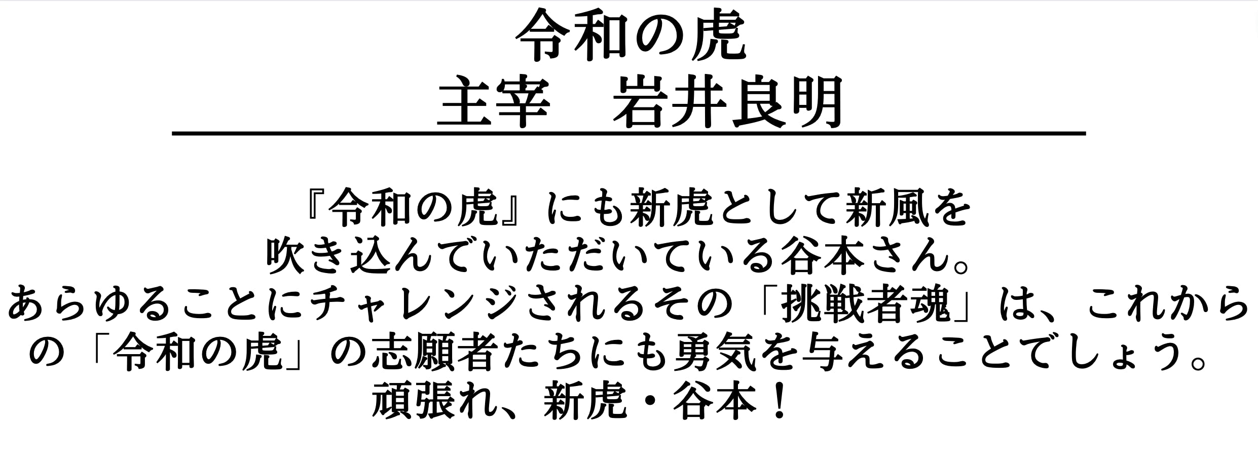 志願者で応募したにも関わらず、岩井主宰に怒られ志願者として出れず、いきなり虎になるのは令和の虎史上初。