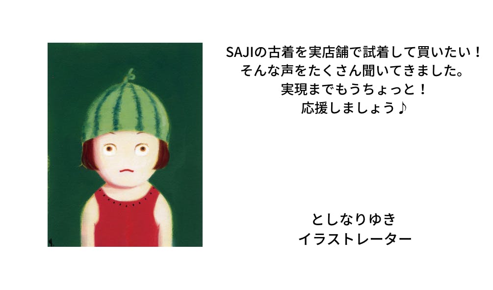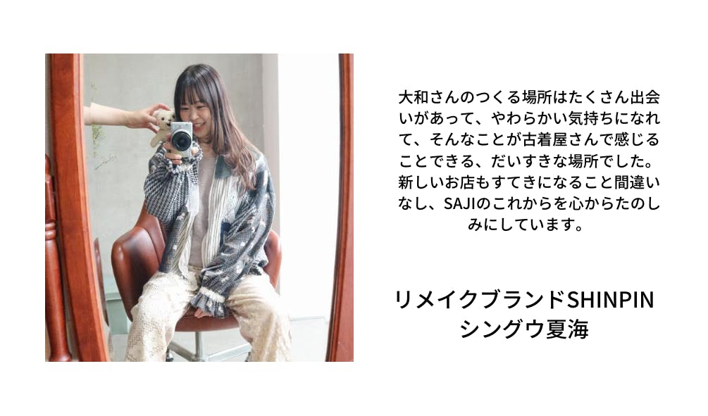 SAJIの古着を通して、いろんな方が「私に似合うかな?」とワクワクして古着を楽しんで貰えたら嬉しいです。