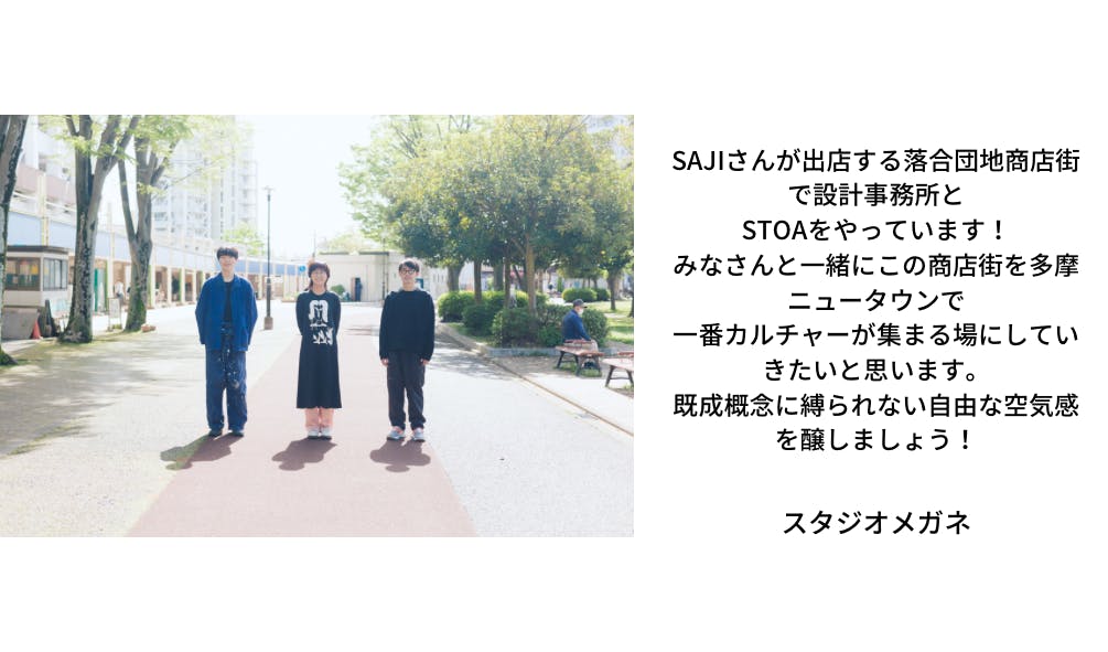 次に「古着を通して色々な人の混じり合いが感じられる事は出来ないかな?」と考え、今度は人と人が実際に会える実店舗を街の文化が混じりあう商店街に出店しようと、建築設計事務所のスタジオメガネさんと企画しました。
