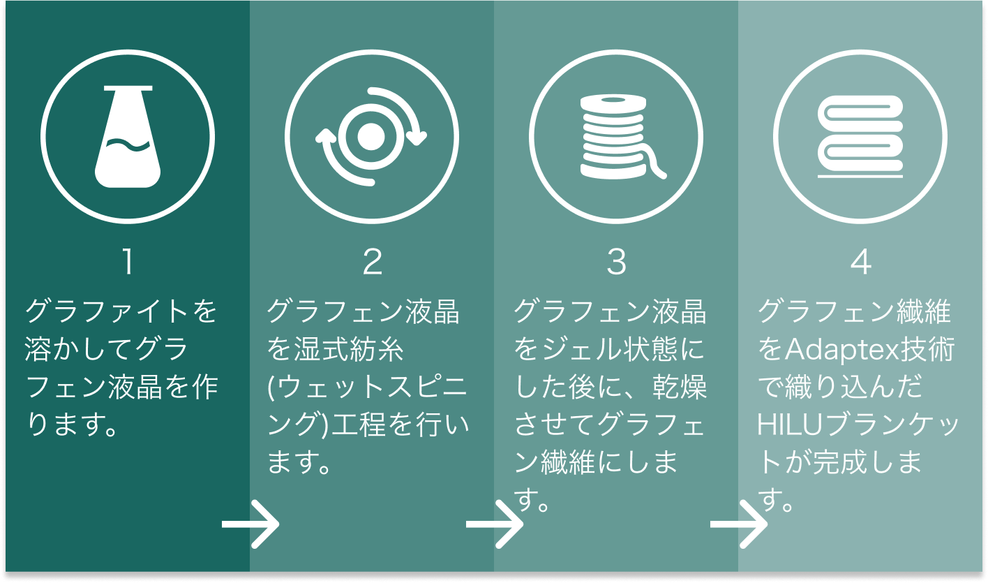 HILUブランケットは、グラフェン100%素材を織り込んでできています。