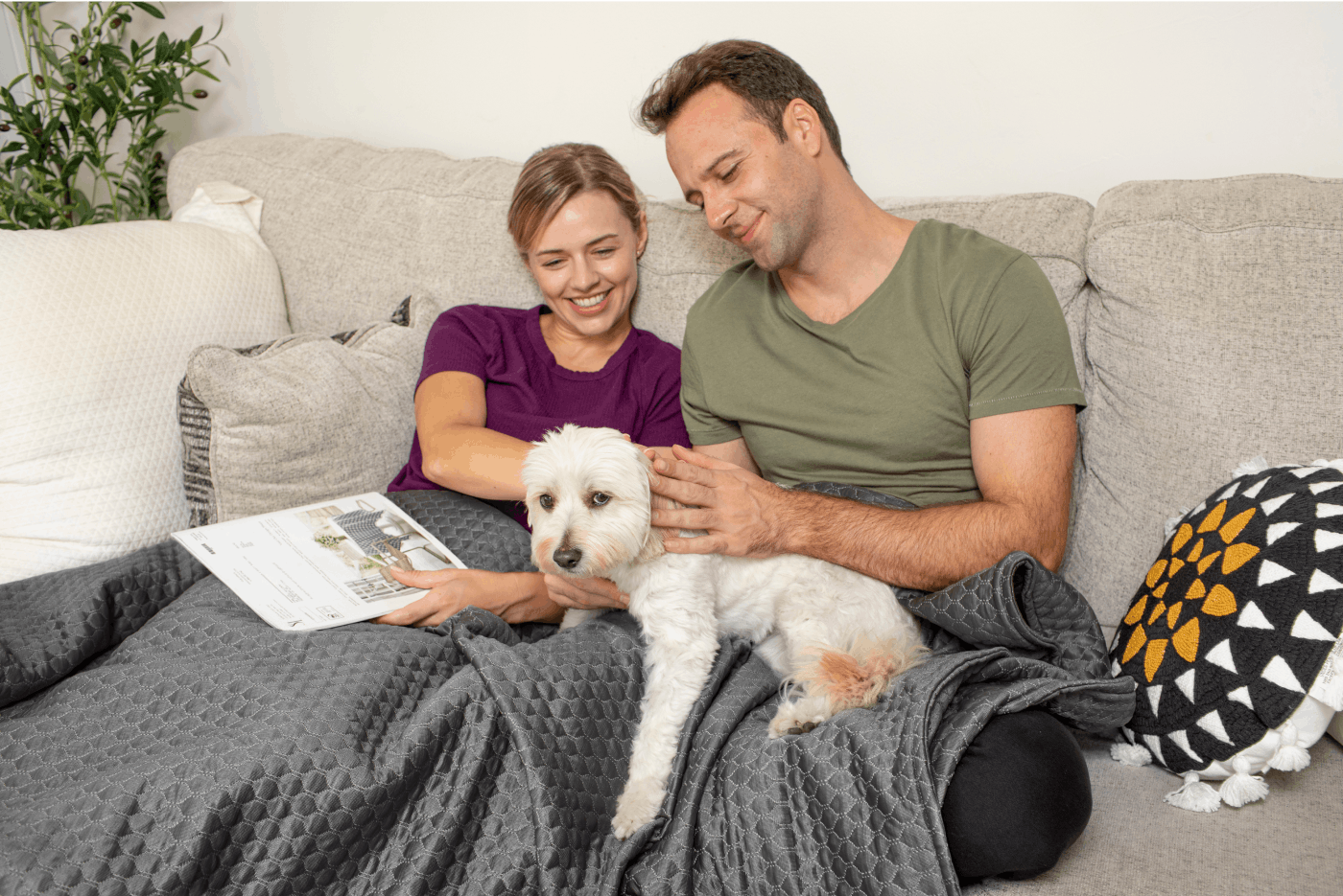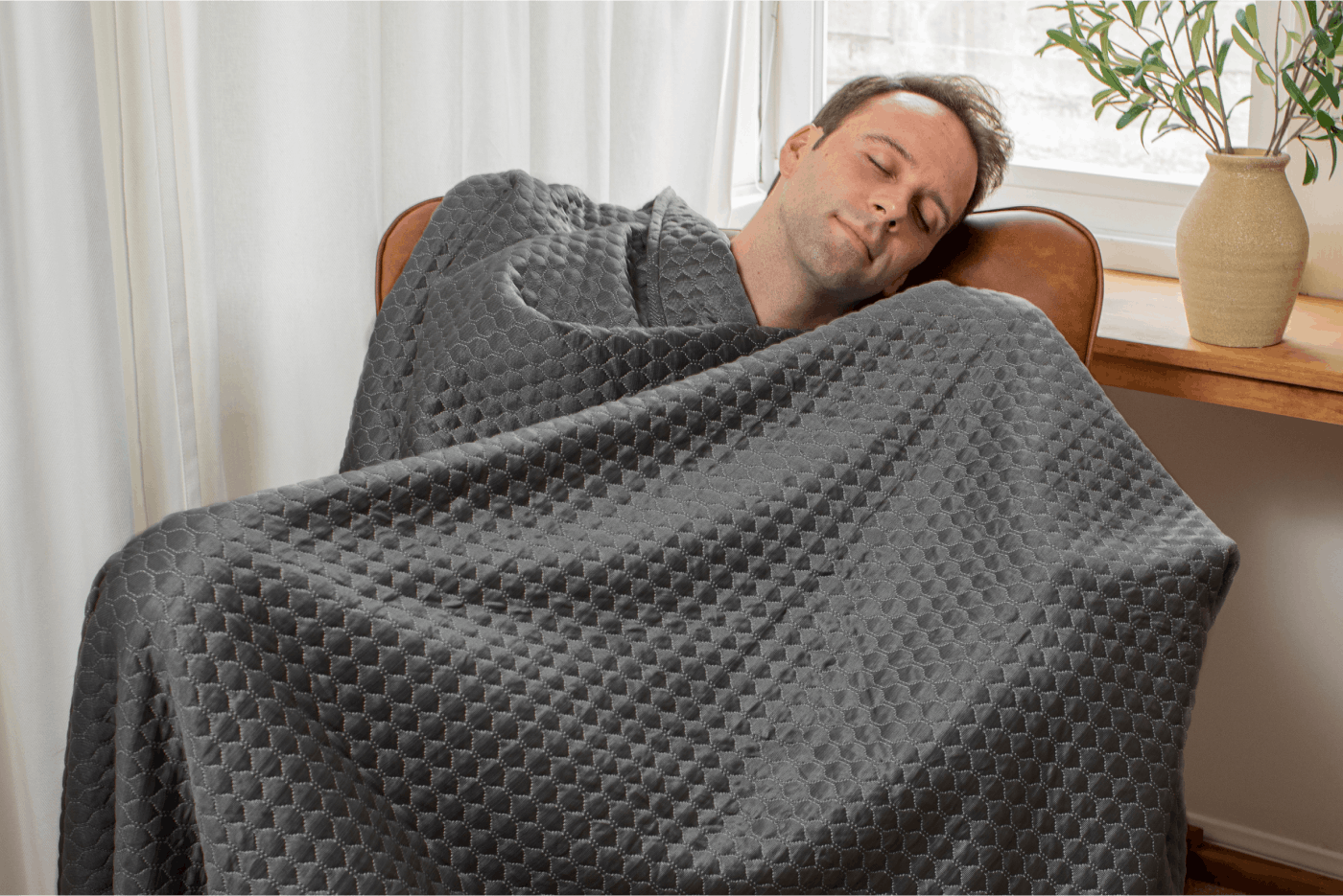 異なる人やペットのそれぞれの体温に合わせる、HILUスリープブランケット。