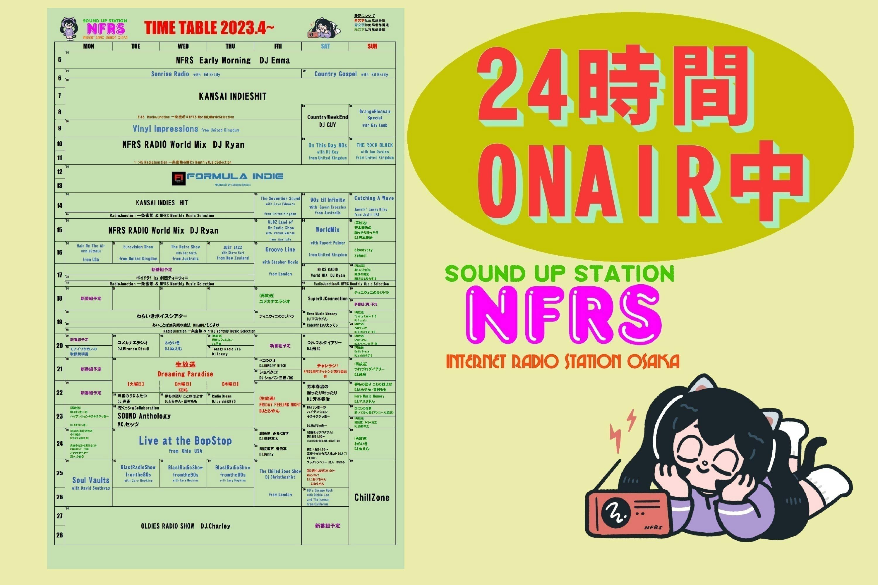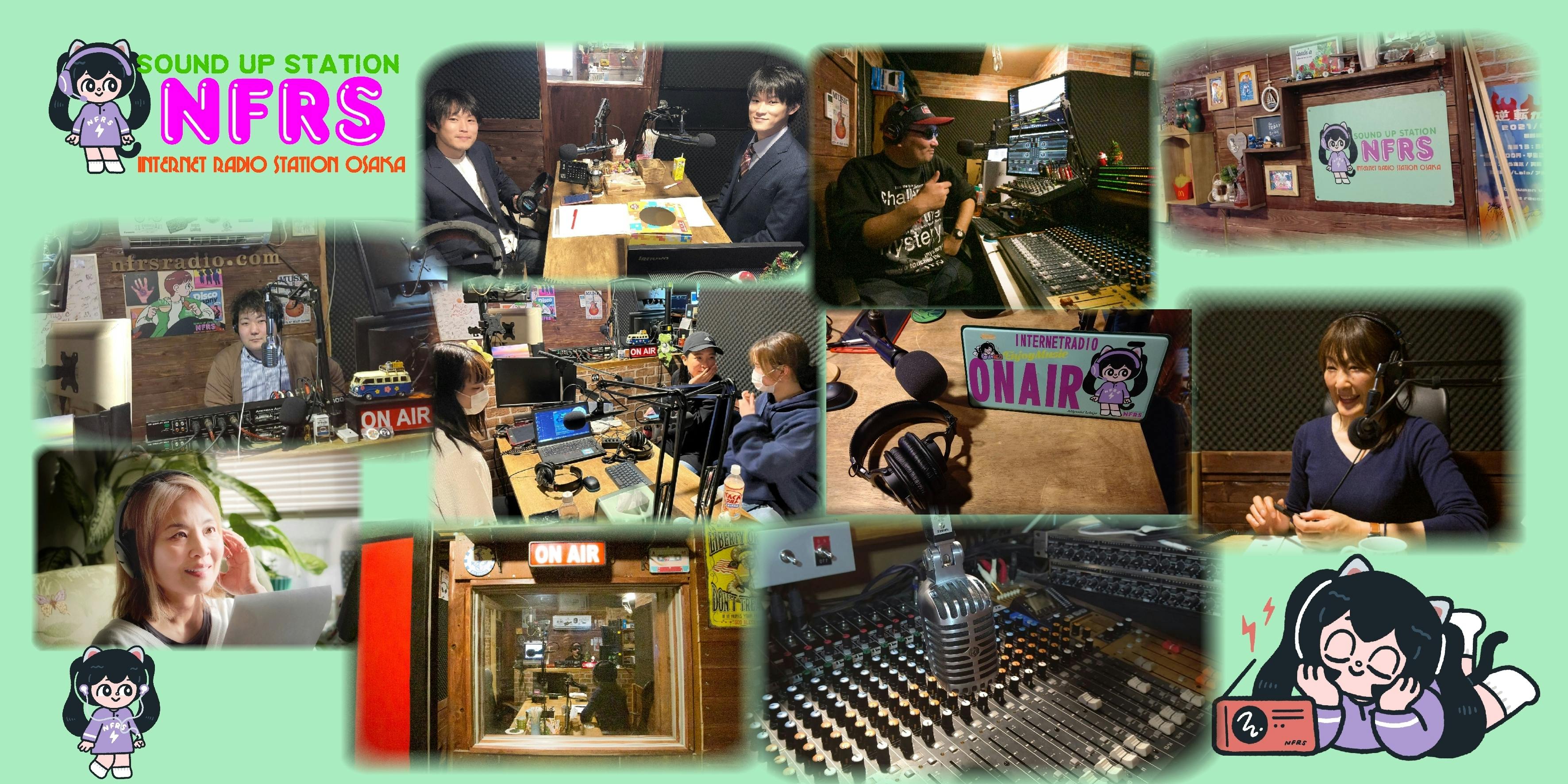 初めまして!大阪は西成、人情の町は天下茶屋から世界へ「音のエンターテイメント」をテーマに発信しているインターネットラジオ放送局「SOUND UP STATION NFRS(サウンドアップステーション エヌエフアールエス)」です。