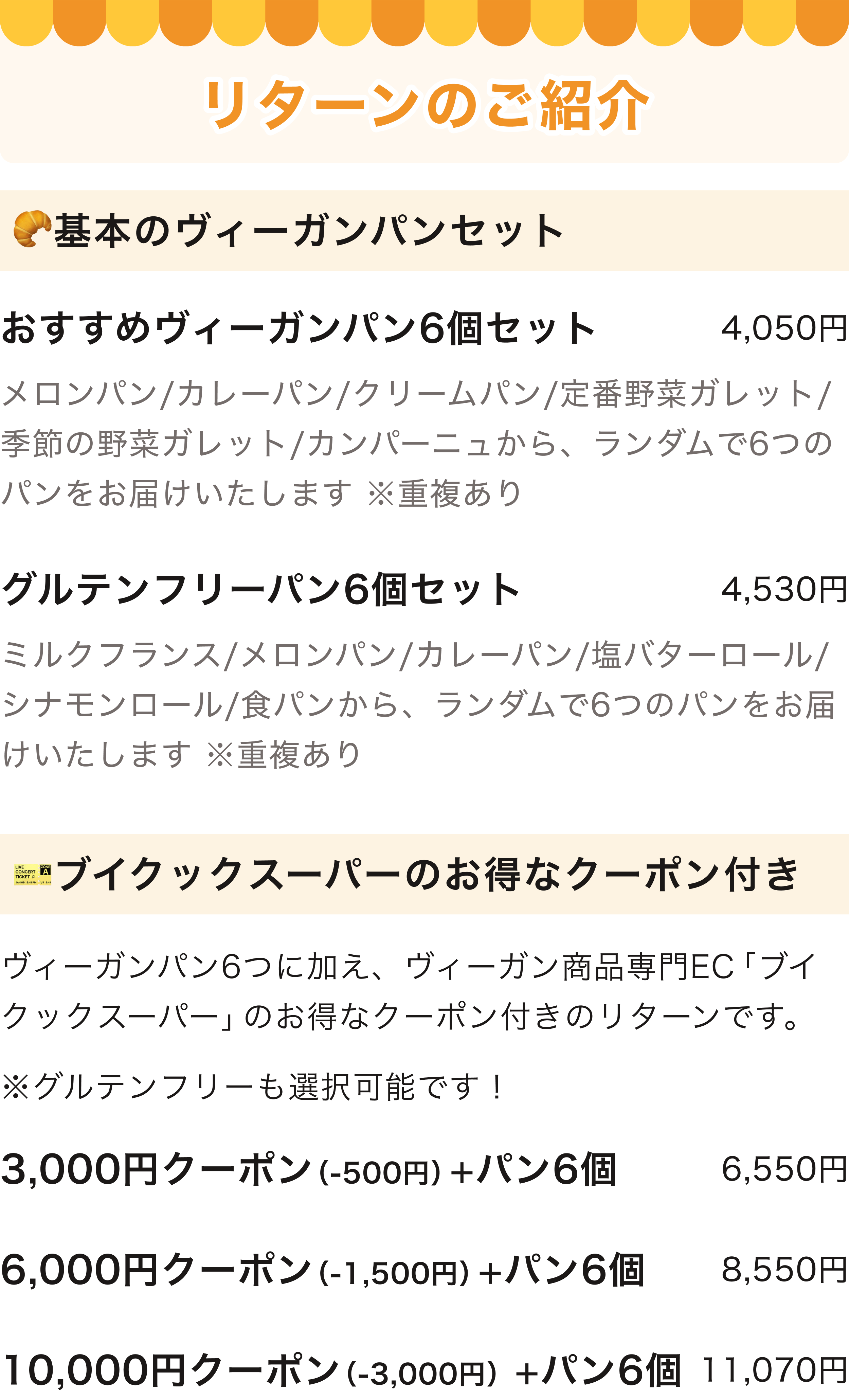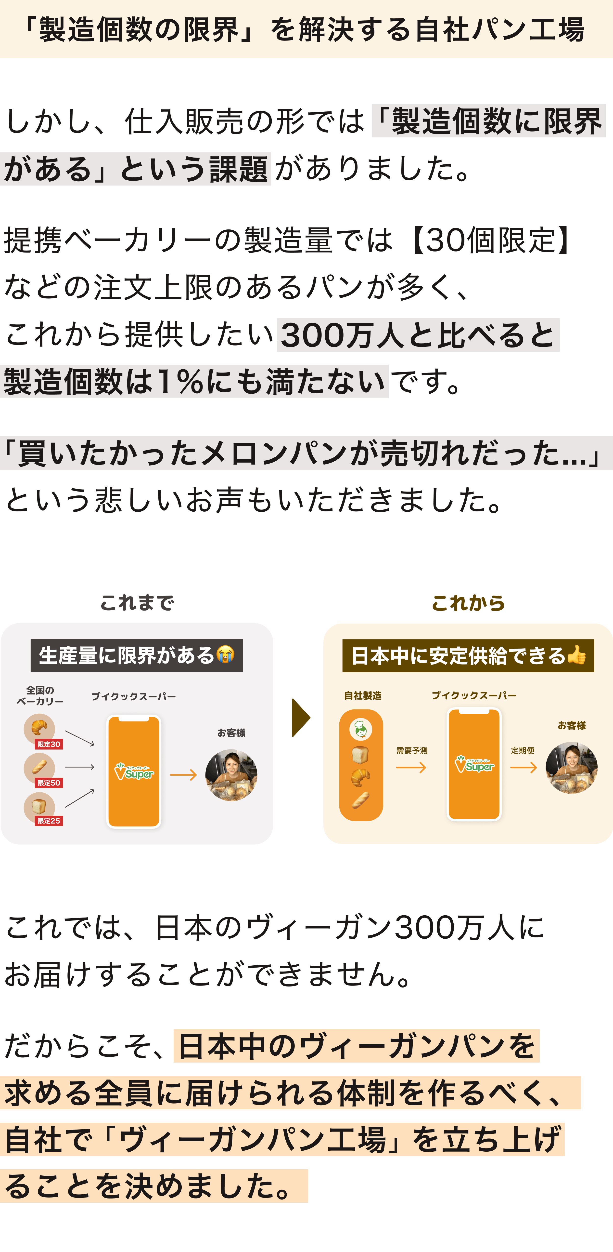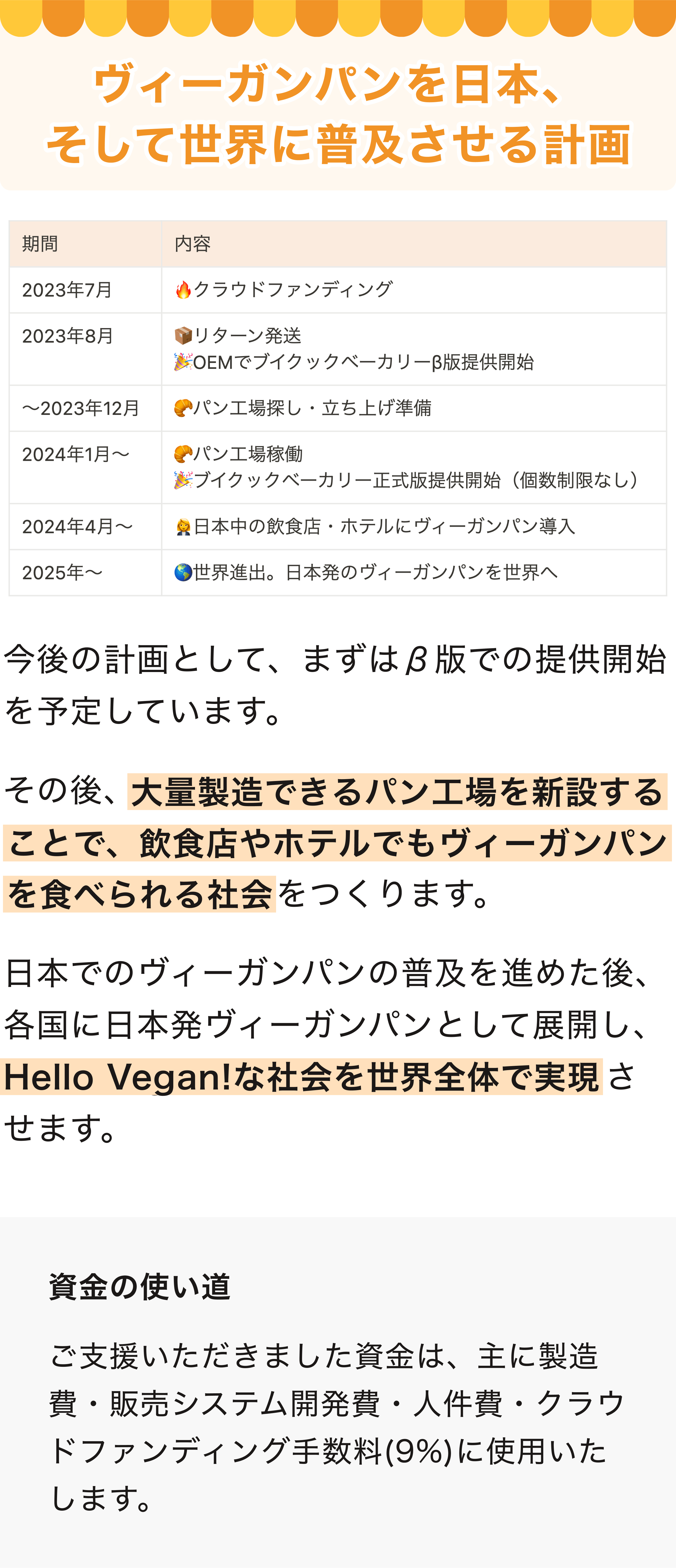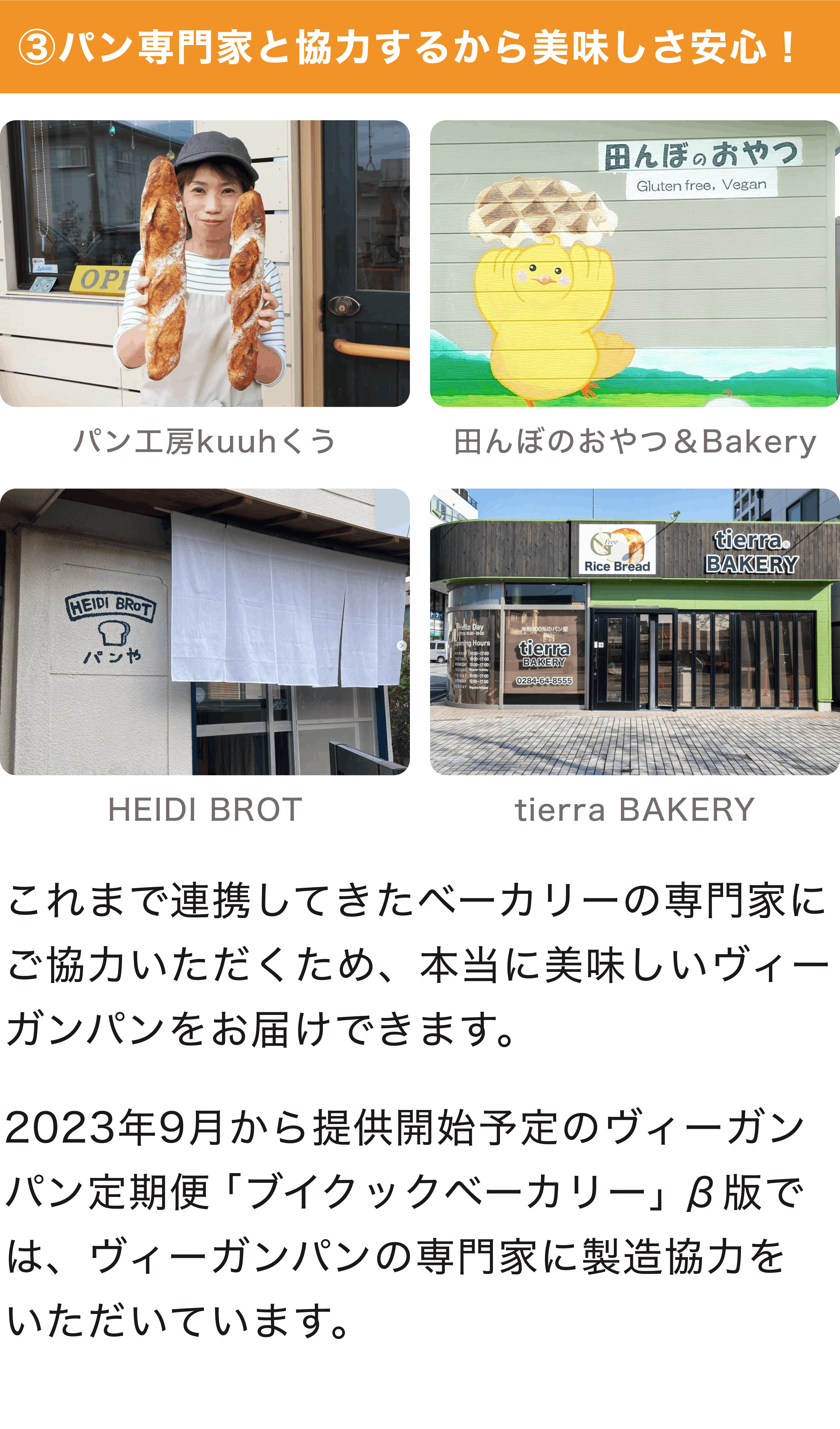 2023/07/22 22:59夜遅くに申し訳ありません。ブイクックの工藤柊です!応援してくださる皆様にお伝えすなければと、活動報告を緊急で書いています。なんと、100%達成しました...!!!ご支援いただいた皆様、SNSシェアいただいた皆様に、改めて感謝です。ひとまず、一安心しています。ヴィーガンパンを日常にするために、こんなにも多くの方に共感・支援いただけて、本当にありがたいです。明日23:59までに、300人を目指して。そして、今回のクラウドファンディングの本来の目標である、「ヴィーガンパンを300人に届けること」を目指して、明日の23:59まで頑張り続けます!のこり15人に支援いただけるよう発信など頑張り続けていきます。最後まで、ご協力よろしくお願いします!(明日は、ビーガングルメ祭りにも出店していますので、もし見かけることがあればお声がけいただけると嬉しいです。) もっと見る