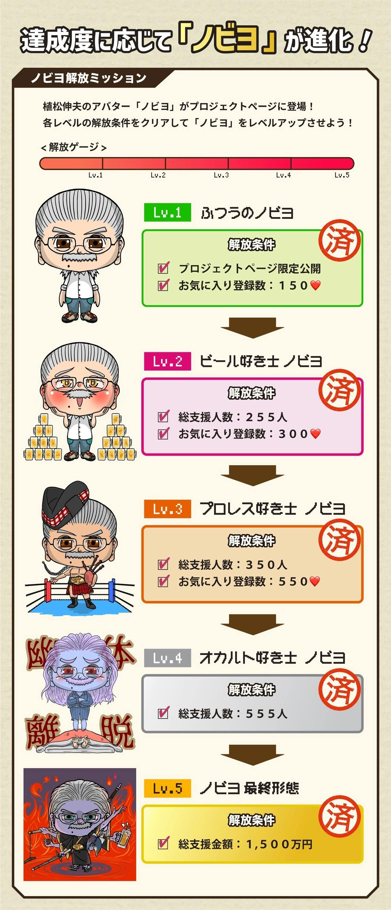 支援人数やこのページのお気に入りボタンが一定数を超えるごとに、