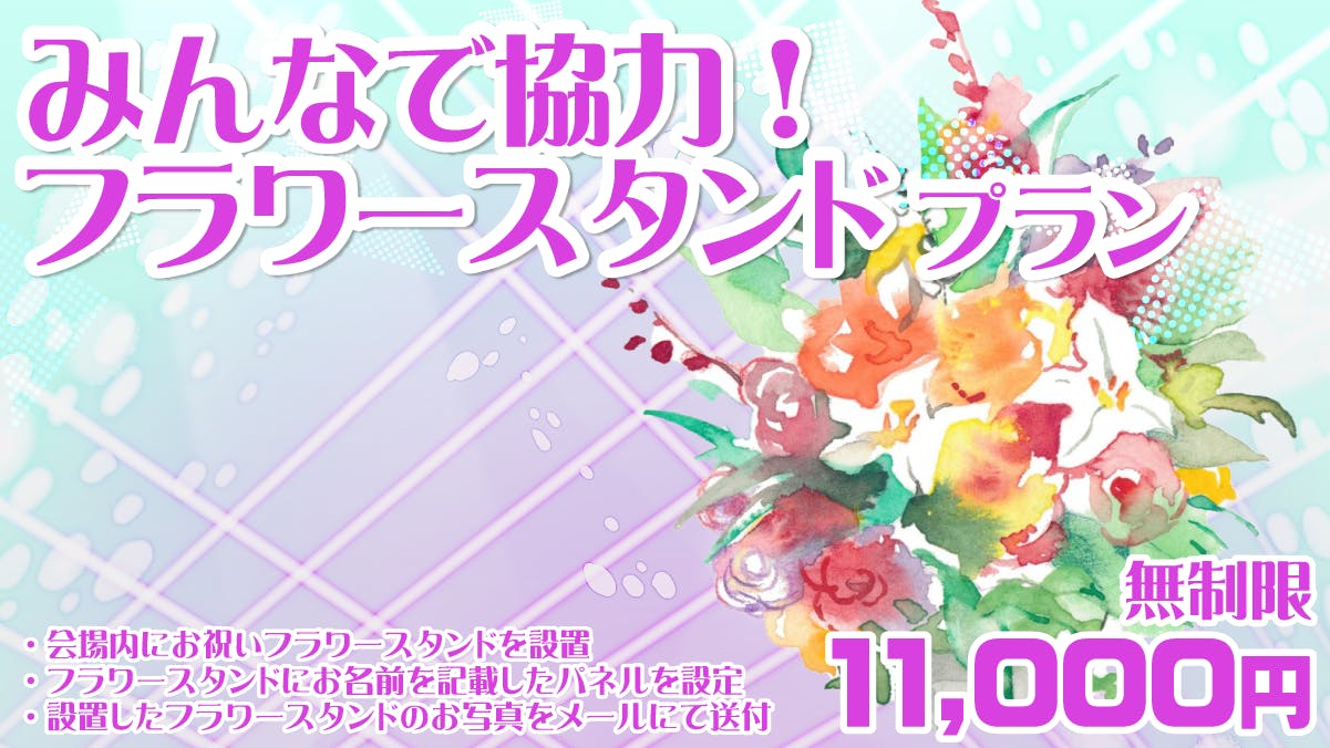 会場に琴葉姉妹10周年ライブのお祝いフラワースタンドを送ることができるプランです。支援数によってよってフラワースタンドのデザインが変動、支援が増えるととっても豪華なフラワースタンドの設置も可能になります。