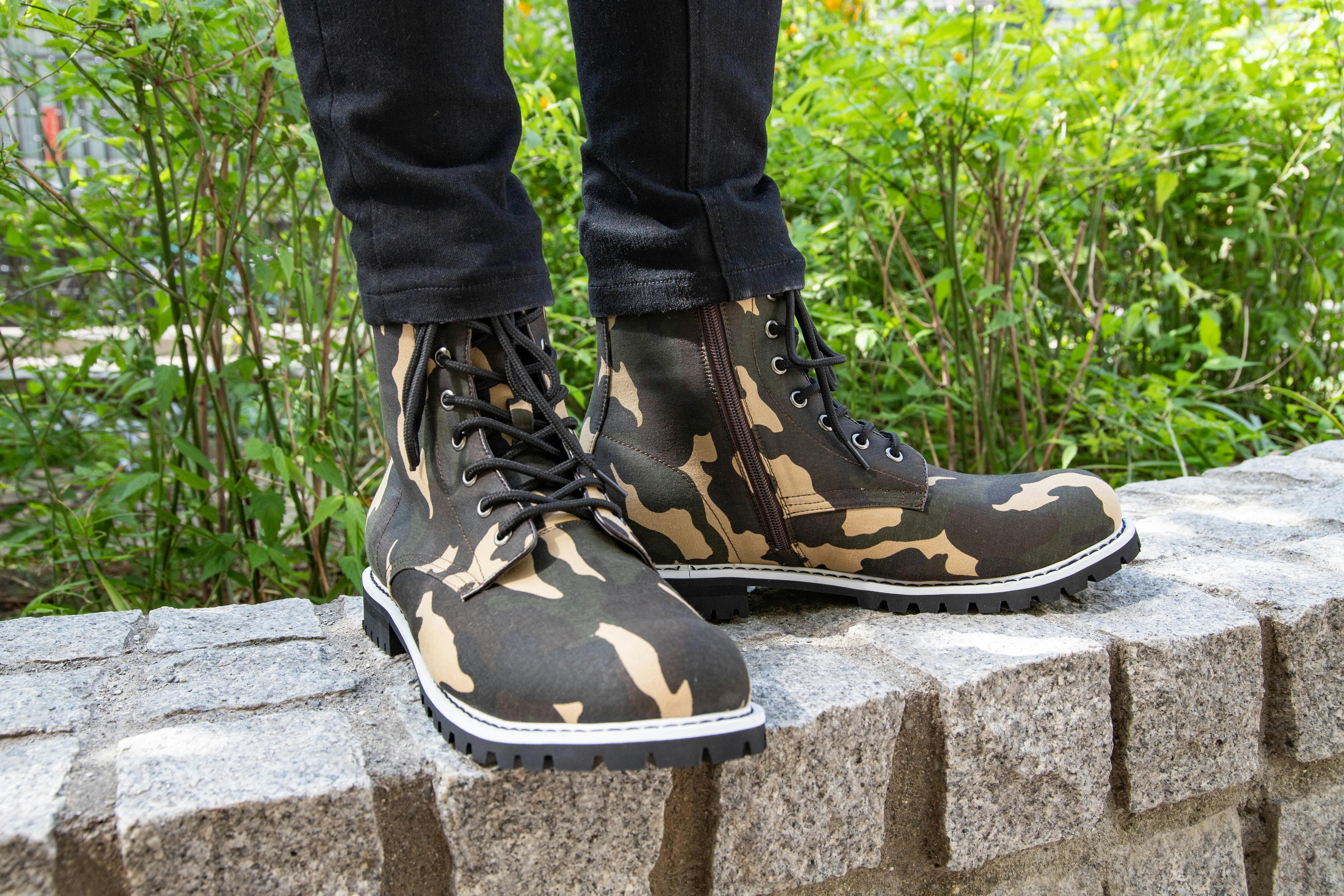 堀江貴文の愛用していたブーツのモデルをイメージし、復刻させたのがこのモデルです。柄として作為的になりすぎないお洒落な迷彩デザインで、シンプルな服のアクセントにはもってこいのブーツになっています。