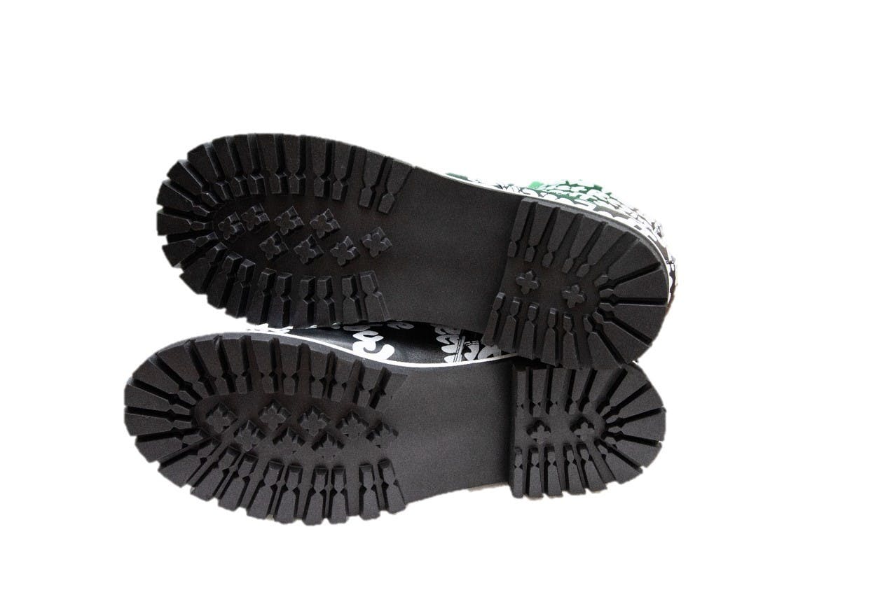 市場ではシンプルなブーツが流行する中で、こういったグラフィックを前面に推したブーツは中々少ないと思います。