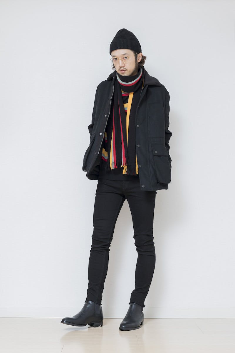 黒無地のブーツも使い易いですが、こうしたグラフィックデザインが入る事で、まるで印象が変わります。脱ノームコアが叫ばれている現在のトレンドにマッチした一品といえます。