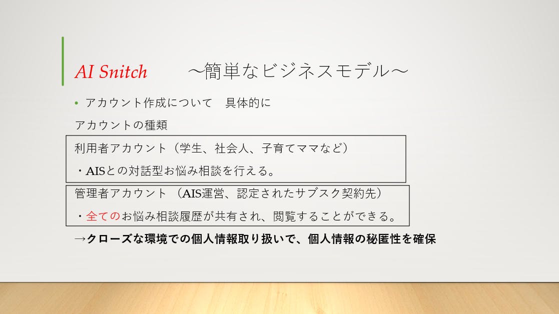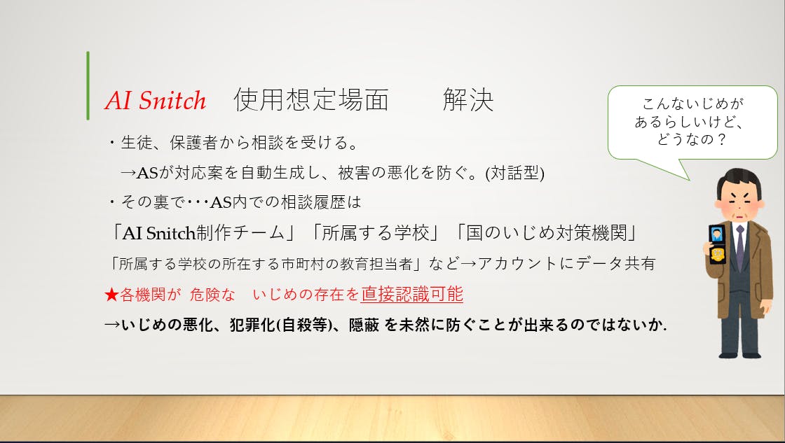 今回、私が企画した「AI Snitch」について以下で説明致します。