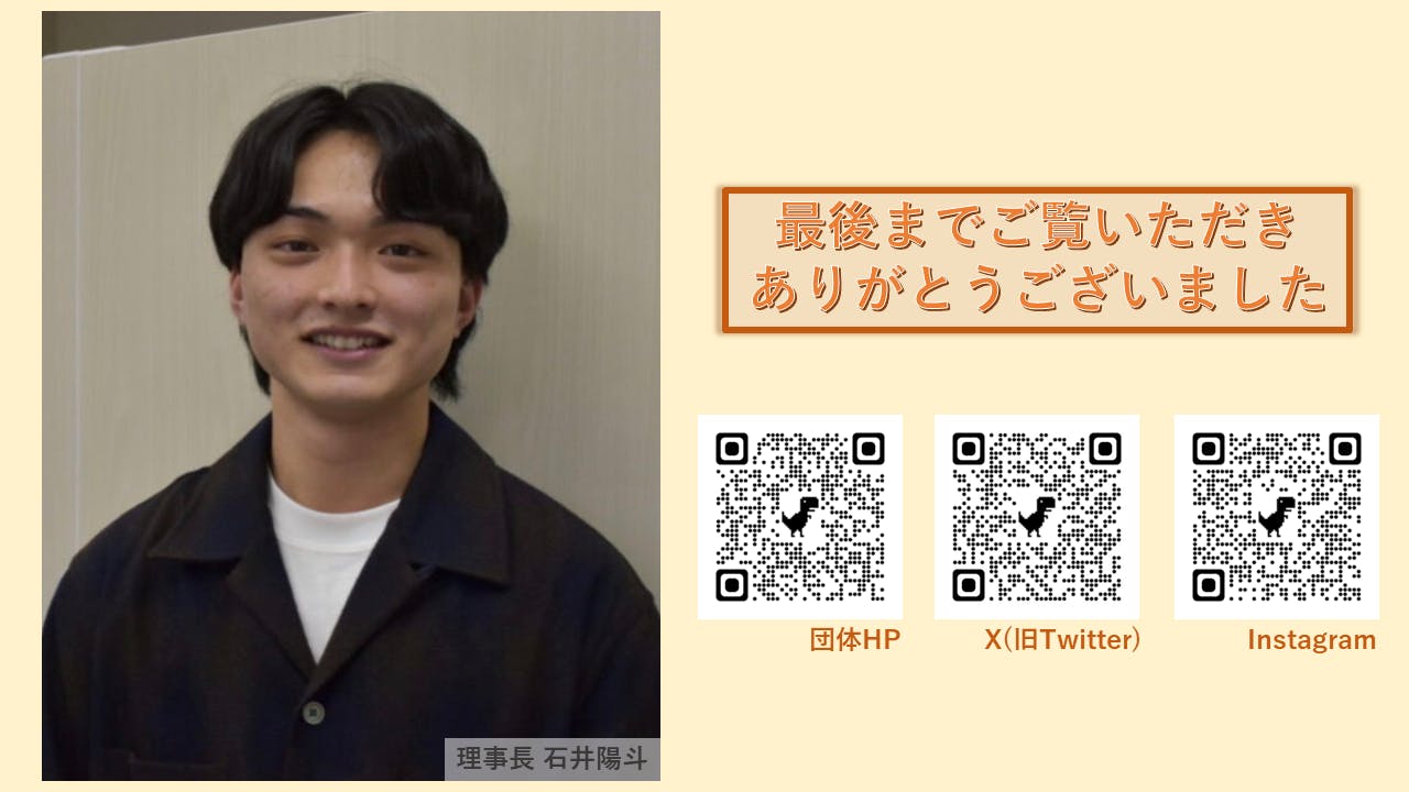 当団体は、2021年9月に私と高校時代の同期である村上の2人で設立しました。昨年(2023年)8月にNPO法人の登記申請が受理され、ようやくNPO法人として活動を開始することができました。