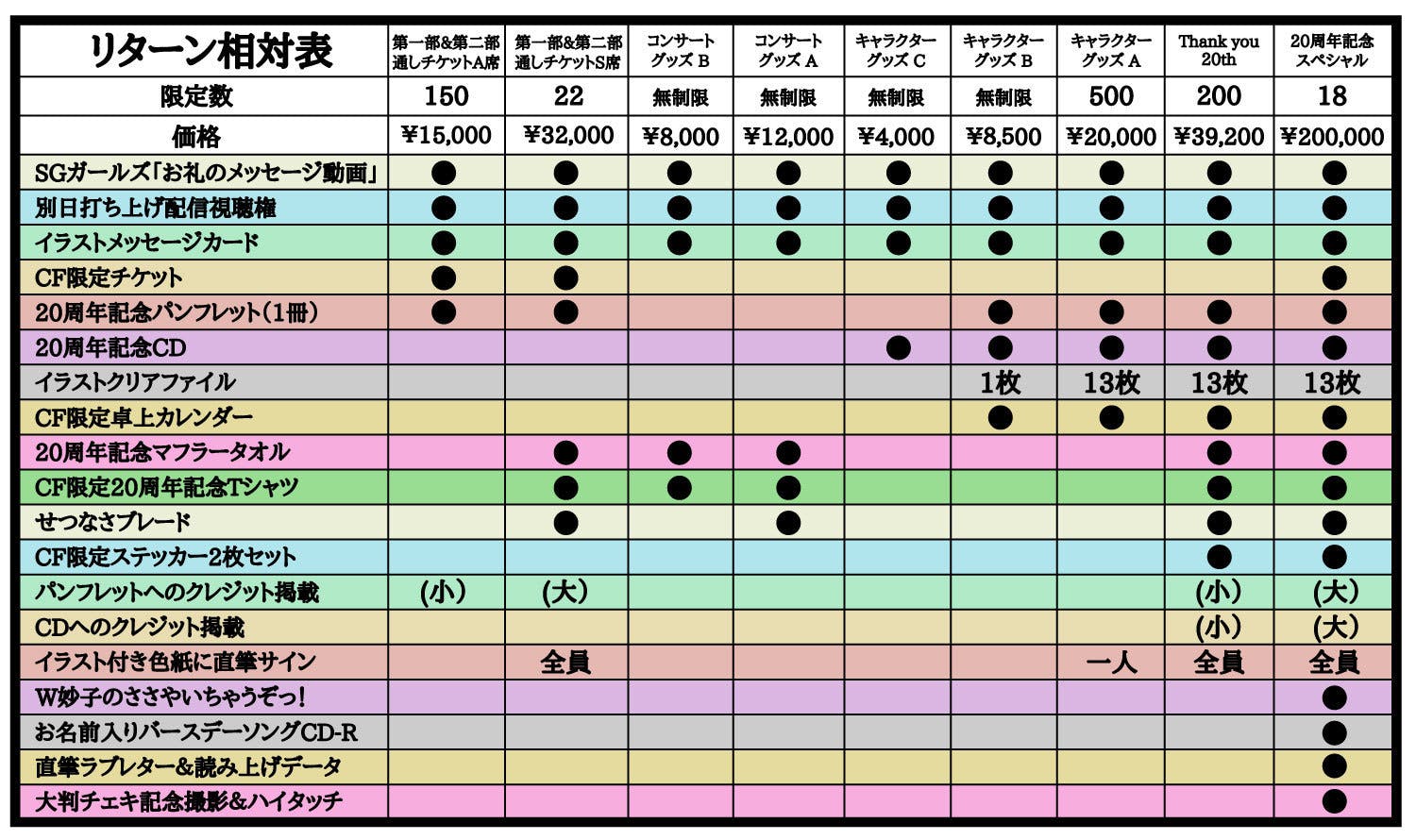 2019/05/31 19:22■『センチメンタルグラフティ20周年プロジェクト』の歩み~2016年~・10月9日 センチメンタルグラフティ20周年プロジェクト初会合<新宿>(久しぶりに会うメンバーも多く、同窓会雰囲気の中「センチの20周年をファンの方と一緒にお祝いしたいね」とイベントへの意気込みを語り合いました)~2017年~・3月6日 ガールズと多部田さんのセンチプチ同窓会<芝公園>(多部田さんが持ってきて下さったサターンとモニターで「ファーストウィンドウ」を鑑賞)・この間に、濱田さん、多部田さん、甲斐先生、大倉先生にプロジェクトの参加協力を依頼~2018年~・1月22日 「センチメンタルグラフティ」20周年記念日公式Twitterから初ツイート!!「あなたに、会いたい…」・甲斐先生が描いて下さることになった新規イラストのためのキャラクターの私服を、ガールズが各自選び提出・ガールズと甲斐先生のランチ会・2月8日 『ほのか』『えみる』制服イラスト新作(久しぶりに見る甲斐先生の新規原画にりゅんりゅんする♪)・5月25日 W妙子初顔合わせのミーティング <S-20の部屋にて>・7月2日 ツイキャスミーティング(今後の展開やツイキャスを始めることについて相談。 まずは、ツイキャスとは…から全員で勉強)・7月17日、22日 ツイキャス予行練習(ツイキャスで使う飾りや、ホワイトボードなど購入。 告知用の動画なども撮影)・8月1日 公式Twitterから、ツイキャス開始のお知らせツイート「8月2日木曜日午後9時。明日からです! あなたに会いたい!」・8月2日 初回TwitCastingLIVE(以降ツイキャス)「帰ってきたセンチメンタルナイト20」(豊嶋のスマホにてドキドキの初配信!!!)・8月4日 第2回ツイキャス(甲斐先生の新作イラスト初公開、お題「センチ20周年でやりたいこと」)・8月10日 第3回ツイキャス(クラウドファンディングでの20周年イベント開催決定を発表! 開催日も発表!)・8月12日 第4回ツイキャス(満仲宅にて手作りお好み焼きを食べながらの配信。 米本と初コラボ配信)・8月16日 第5回ツイキャス(初の昼キャス、お題「こんなリターンあったらいいな」)・8月17日 第6回ツイキャス(チラシプレゼント)・8月18日 ライブミーティング・8月20日 初回「onlyセンチメンタルナイト20」企画室(初のゲリラ配信)・8月23日 第7回ツイキャス(イベント参加メンバー全発表!! 奥村さん初参加)・8月26日 公式サイトミーティング・8月29日 第2回企画室(メガネ萌え回)・9月1日 第8回ツイキャス(CAMPFIREさんでの初配信!! 浴衣放送♪イベント会場発表! 1日2回公演も発表! 関係者様からのコメント紹介)・9月6日 第3回企画室・9月8日 公式サイトミーティング・9月9日 第9回ツイキャス(公演名「再会」と公演内容発表! リターングッズ発表! 鈴木優制服初登場)・9月10日 グッズデザイン第一稿・9月11日 公式サイト初公開♪・9月12日 第10回ツイキャス(プロジェクトページ限定URL公開、リターンの説明)・9月14日 第4回企画室・9月16日 第11回ツイキャス(プロジェクトページ公開後のリアクションを受けて…。濱田さんゲスト出演。イベント費用の内訳説明)・9月17日 リターンミーティング(今後の展開に関して熱い議論が行われました) からの~ 「帰ってきたセンチメンタルナイト20」番外編 緊急配信! (ゲスト 濱田さん、初登場バンブーさん)皆様からお寄せいただいた様々なご意見、感想をもとに再検討し、より良いかたちでクラウドファンディングを開始できるよう、仕切り直しをすることを報告。募集開始日を延期!! リターンの内容をアップデートすることを発表!!・9月21日(クラウドファンディング開始日、初回予定日)・9月22日 リターンミーティング からの~ 企画室 緊急配信!!『より分かりやすいコース分けと、選りすぐりのグッズ』を念頭にリターンを再検討。コースの基本軸変更、チケットの座席区分変更、グッズのコンプリートコース検討・9月25日 企画室(各チケットコースの価格発表)・9月28日 企画室(全リターンコース、空席がでた場合についての説明)・10月1日 キックオフまでの自キャライラストでのカウントダウン開始 企画室(プロジェクトページのプレ公開日、募集開始日発表!!)・10月5日 企画室(通称せつなさブレード初公開)・10月6日 クラウドファンディング限定URL再公開 第12回ツイキャス・10月8日 企画室・10月10日 第13回ツイキャス 募集開始前夜祭(米本、広島から参上!)・10月11日 第14回ツイキャスCFスタート感謝祭センチメンタルグラフティ20周年プロジェクトCF募集開始(開始9分で100%達成! (号泣))・10月13日 第15回ツイキャス・10月15日 ストレッチゴール全て(250%)達成!! (たった4日ですべて達成して感謝です)・10月16日 第16回ツイキャス(参加者全員大喜利の無茶ぶり配信。 奥村さんから「圧熱」の名ワードが飛び出す!)・10月20日 活動報告 初回・10月21日 企画室(イベント諸注意など)・10月25日 第17回ツイキャス(ハロウィン仮装放送、前田ほのかたん)・11月1日 公式サイト、ストレッチゴールミーティング・11月2日 パンフレットの写真撮影・11月4日 第18回ツイキャス(募集終了1週間前)・11